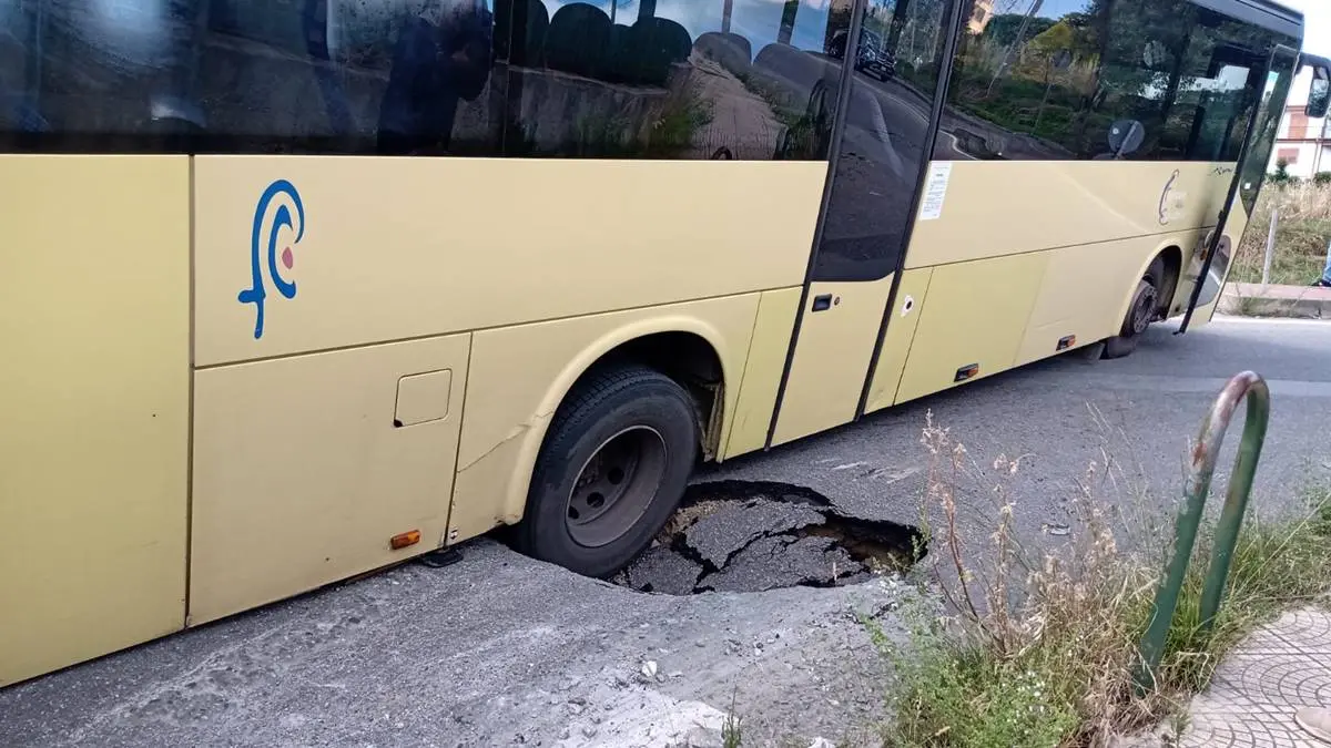 Poteva avere conseguenze ben più gravi l’incidente in cui è incorso, pochi minuti fa, un autobus di linea delle Ferrovie della Calabria, sprofondato in una voragine che si è aperta nel bel mezzo della rotatoria tra via Giovanni Paolo II e via degli Artigiani a Vibo, a pochi passi dalla sede del Liceo Scientifico. Una delle ruote posteriori del bus è rimasta incastrata all’interno del cedimento del manto stradale, bloccando il mezzo pesante in piena rotatoria. Nessuna conseguenza, a parte lo spavento, per le uniche tre persone a bordo: l’autista e due passeggeri che sono stati poi fatti scendere. Sul posto si sono portati i carabinieri di Vibo per i rilievi del caso mentre si attende l’arrivo di un mezzo di soccorso in grado di rimuovere l’autobus e liberare così il traffico che ha subito notevoli disagi in uno dei punti nevralgici della città. [Continua]