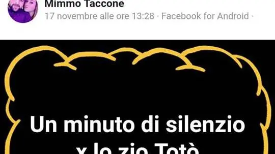 Circa trenta minuti dopo la pubblicazione del nostro articolo, dalla bacheca facebook di Mimmo Taccone il post su “zio Totò” è stato cancellato.