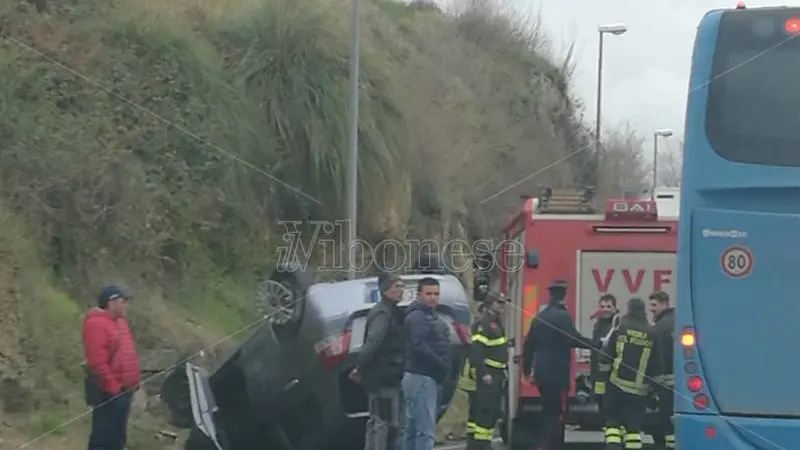 Un nuovo incidente stradale, il secondo in due giorni, si è verificato lungo la Statale 18 nei pressi dell’incrocio di Ionadi e San Costantino Calabro. La vettura, una Toyota Yaris, probabilmente a causa di una brusca manovra e dell’asfalto reso viscido dalla pioggia, si è ribaltata uscendo di strada in un tratto in discesa.