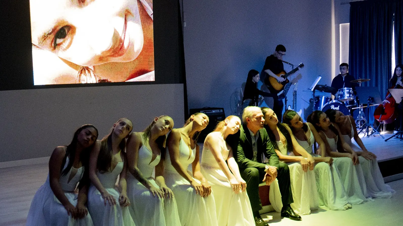 “Arte e spiritualità: momenti sacri di danza e poesia” Il prof. Giuseppe Cinquegrana, antropologo e conduttore della cerimonia, ha saputo dare profondità ai vari momenti, definendoli “sacri”. Il balletto di apertura della classe III del corso coreutico, sulle note di “Nessun grado di separazione”, che ha evocato la purezza degli angeli, grazie alla delicata coreografia della prof.ssa Roberta Di Natale. Le ballerine, in abito bianco, hanno trasmesso un senso di leggerezza e spiritualità, culminando in un momento di profonda commozione: nel finale, le ragazze hanno preso per mano il papà di Rachele, e seduti accanto a lui hanno appoggiato la testa sulle sue spalle, mentre sullo schermo alle loro spalle veniva proiettata l’immagine di Rachele.