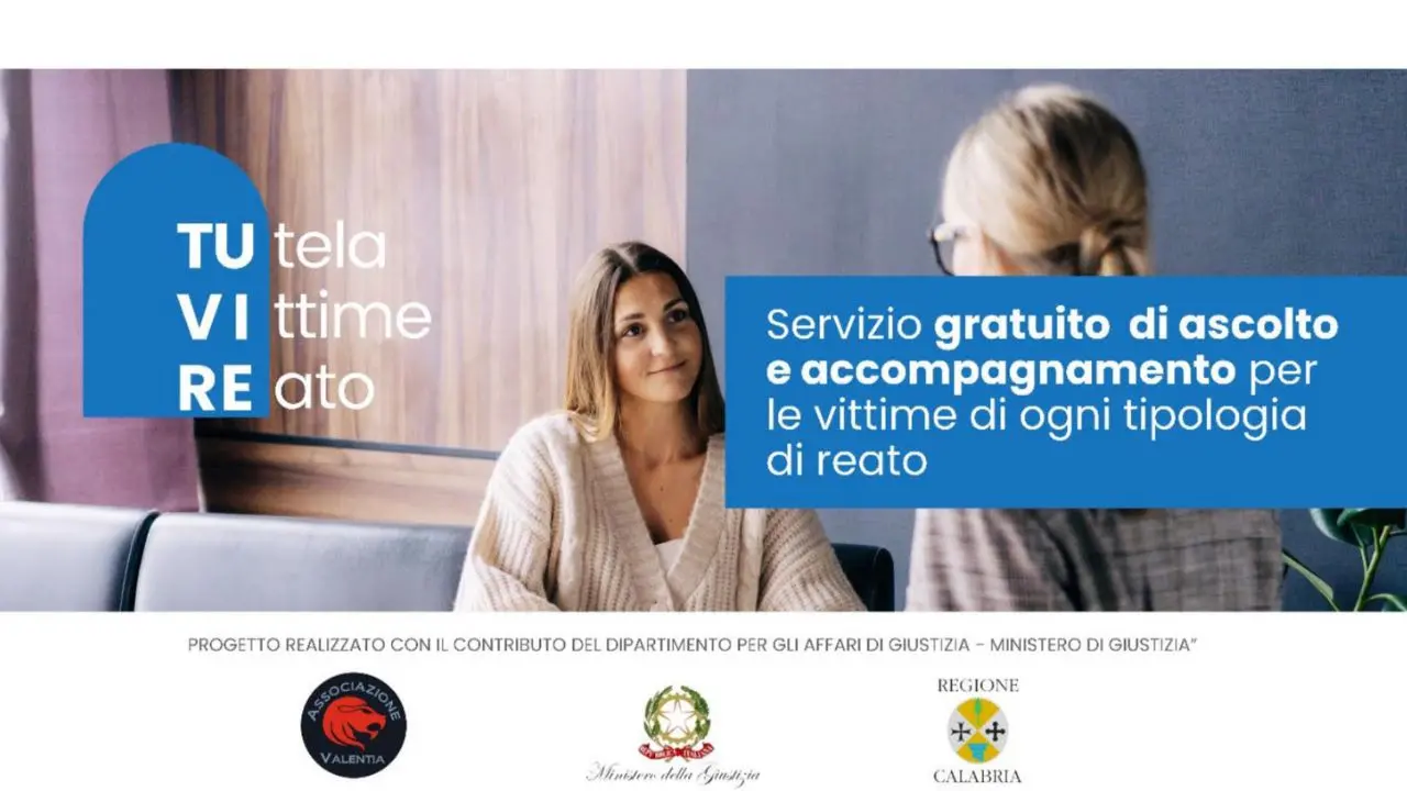 L’Associazione Valentia Aps, guidata dal presidente Anthony Lo Bianco, ha lanciato un nuovo progetto, TU.VI.RE., volto a fornire assistenza multidisciplinare alle vittime di reato in Calabria, realizzato dalla Regione Calabria con il contributo del dipartimento per gli Affari di giustizia del ministero di Giustizia, in collaborazione con il Centro giustizia minorile della Calabria (CGM Calabria), il Provveditorato regionale dell’amministrazione penitenziaria della Calabria (PRAP Calabria) e l’Ufficio interdistrettuale di Esecuzione penale esterna della Calabria (UIEPE Calabria).