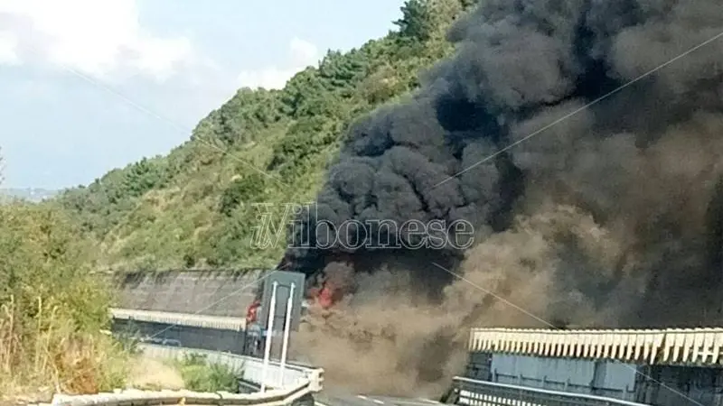 Autobus in fiamme sull’A2 tra Pizzo e Sant’Onofrio, traffico bloccato (VIDEO)