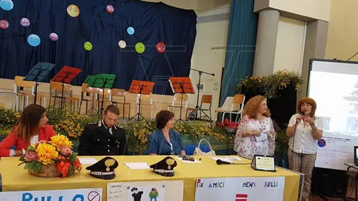 Di bullismo e soprattutto cyber-bullismo si è parlato in un’apposita giornata svolta nella sala-teatro dell’Istituto comprensivo I circolo “Don Bosco”. Un evento che, posto a conclusione dell’anno scolastico, ha inteso rappresentare un ulteriore tassello nel percorso di crescita e di informazione fortemente voluto dalla dirigente scolastica Mimma Cacciatore. Sono stati diversi gli appuntamenti indetti dalla scuola per affrontare le insidie legate all’adolescenza, tramite la presenza di operatori o professionisti nella materia. La particolarità della giornata odierna, è stata la presenza dei genitori e del ruolo di primo piano assunto dai ragazzi. Sono stati loro, tramite i lavori multimediali realizzati, a raccontare la percezione di “bullismo”. Un fenomeno dai numeri allarmanti e costantemente in crescita. Si pensi che atti di violenza e prevaricazioni colpiscono circa il 5,9% dei ragazzi tra gli 11 e i 17 anni.