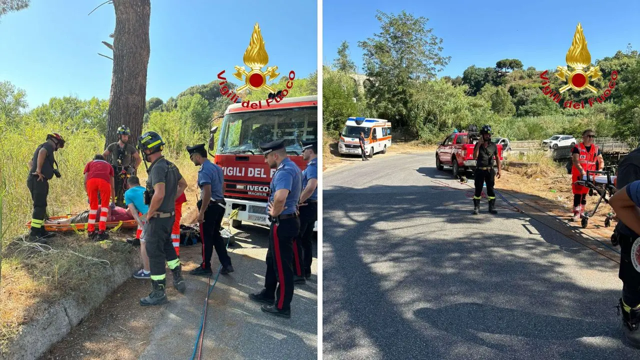 Dopo aver raggiunto il malcapitato, non senza difficoltà dovute alla presenza di una folta vegetazione, i vigili del fuoco lo hanno stabilizzato sulla tavola spinale.