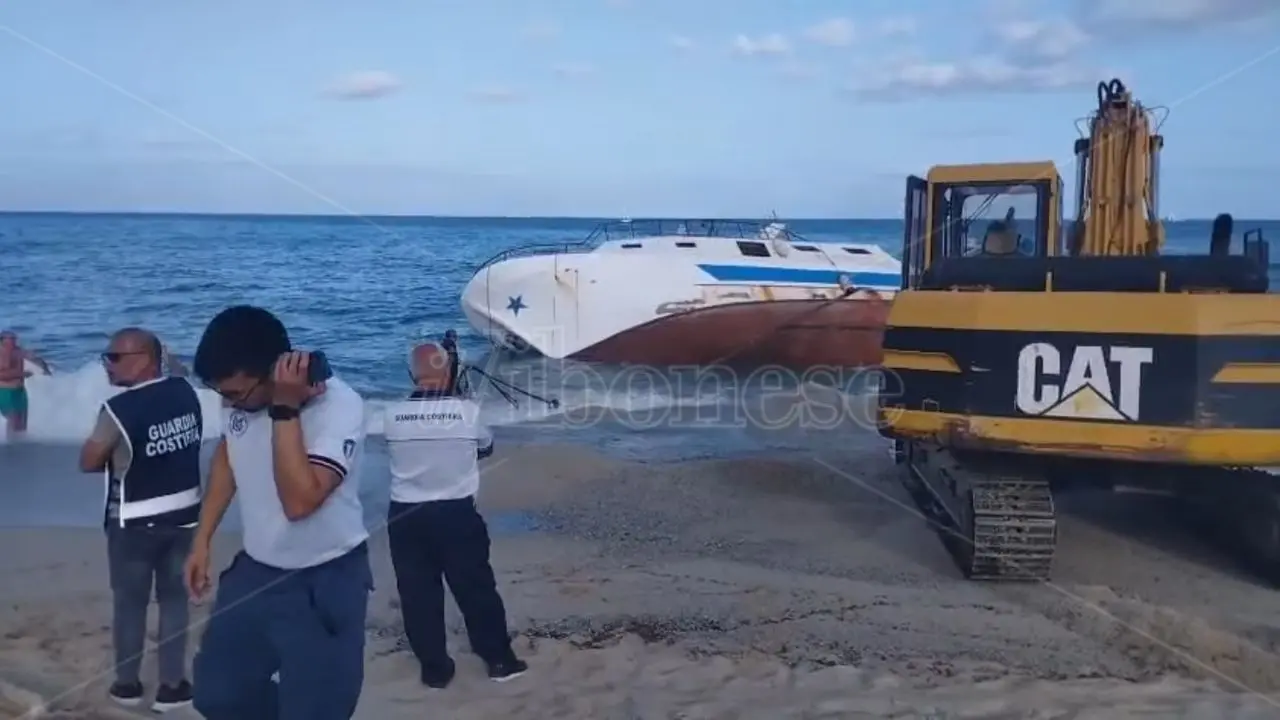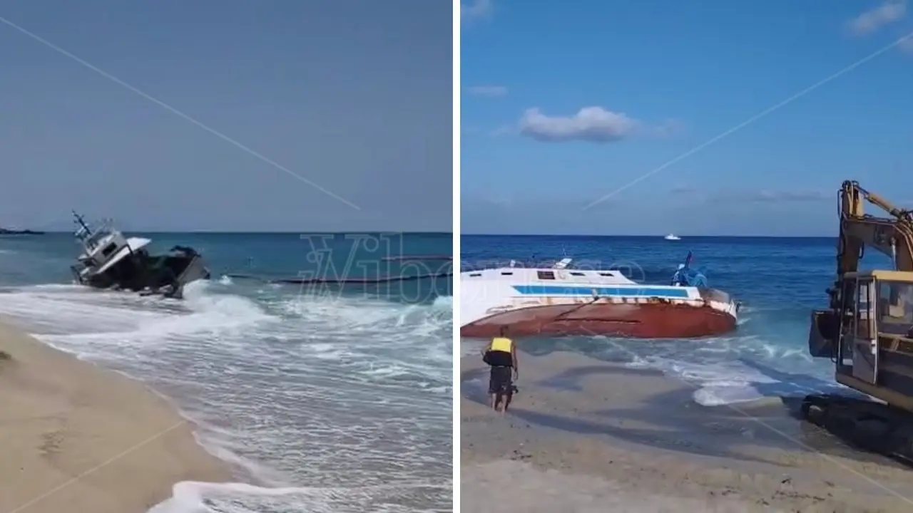 È ancora sulla spiaggia del Tono, a Capo Vaticano, adagiato su di un fianco in balia del mare agitato il peschereccio “Santa Maria” proveniente da Gioia Tauro che ieri, attorno alle ore 12, durante una battuta di pesca a strascico ha urtato uno scoglio al largo del Capo, iniziando a imbarcare acqua. Il natante in difficoltà, con la strumentazione in avaria, è stato notato da due motonavi che stavano effettuando escursioni turistiche nella zona le quali hanno prestato i primi soccorsi all’equipaggio andato in panico mentre il peschereccio iniziava ad affondare, facendo da ponte radio con la Capitaneria di Porto per segnalare il problema e le coordinate. Scortato fino alla spiaggia del Tono, sgomberata in sicurezza da bagnanti e ombrelloni, il “Santa Maria” è stato prontamente seguito da Capitaneria di Porto di Vibo Marina, Tropea e da una motovedetta della Guardia di finanza. Ora il timore delle autorità che presidiano l’area, inclusi i Vigili del fuoco, è che dallo scafo, sollecitato dal moto ondoso in aumento, fuoriesca del carburante. «L’odore di petrolio nell’aria era fortissimo, anche stanotte», ci hanno fatto sapere alcune persone del luogo.