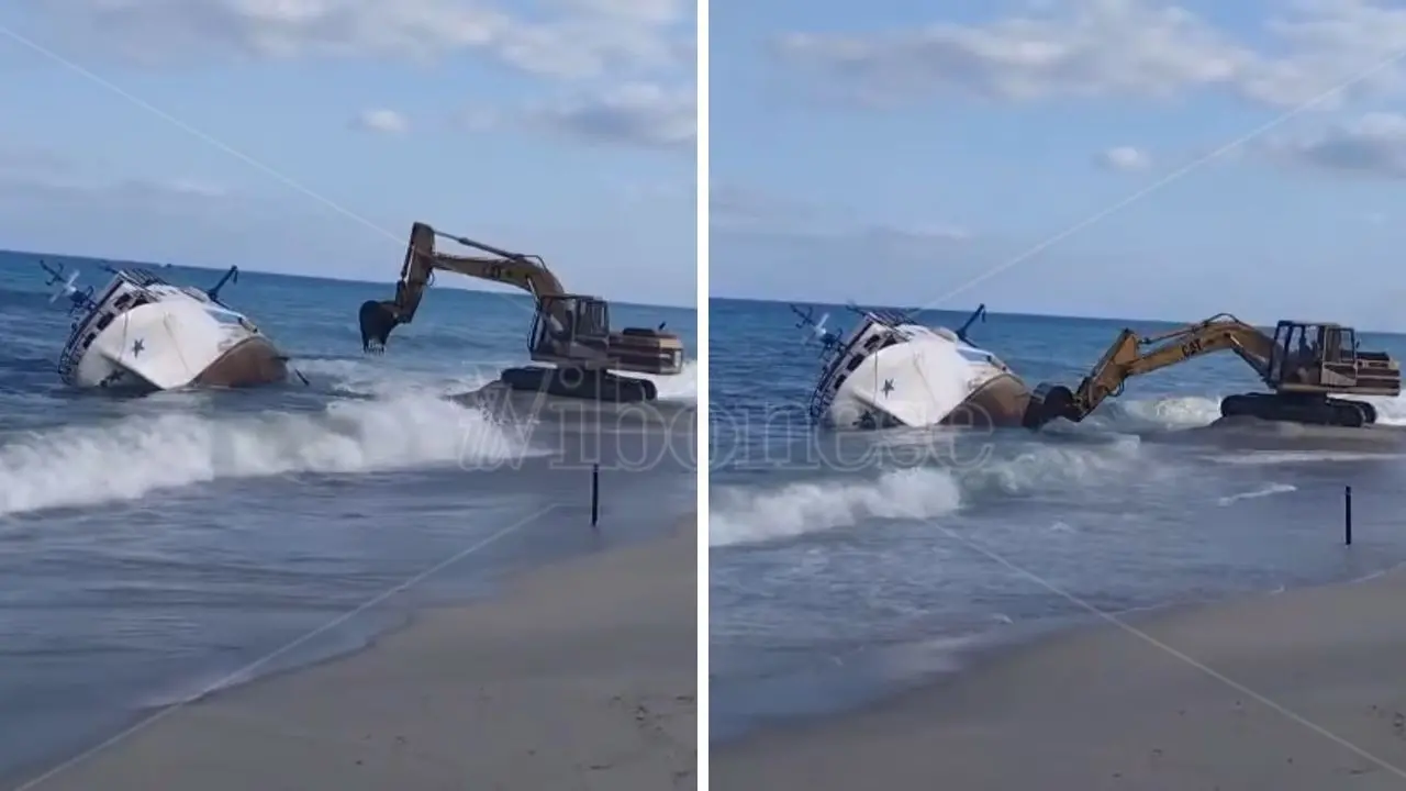 «Nonostante le mille precauzioni – ci hanno poi fatto sapere – c’è però chi ignora il pericolo ed entra comunque in acqua nuotando vicino al peschereccio e le autorità competenti, mentre sono impegnate sul posto anche a controllare i mezzi nel frattempo in azione per sbancare un po’ di sabbia a riva, stanno anche intervenendo con quanti non rispettano le regole imposte». Proseguono dunque da stamane le attività di recupero del peschereccio, «anche con l’ausilio di un escavatore – ci hanno fatto sapere – che sta creando una sorta di corridoio per il recupero del natante che, a quanto pare, avverrà via terra e non via mare poiché le condizioni del “Santa Maria” risultano essere precarie e il mare agitato non facilita le operazioni». Nel frattempo, la Polizia municipale ha bloccato l’accesso strada alla spiaggia per consentire il transito ad autorità e mezzi, evitando che sul posto sopraggiungano dei curiosi che possano ostacolare le attività in corso.
