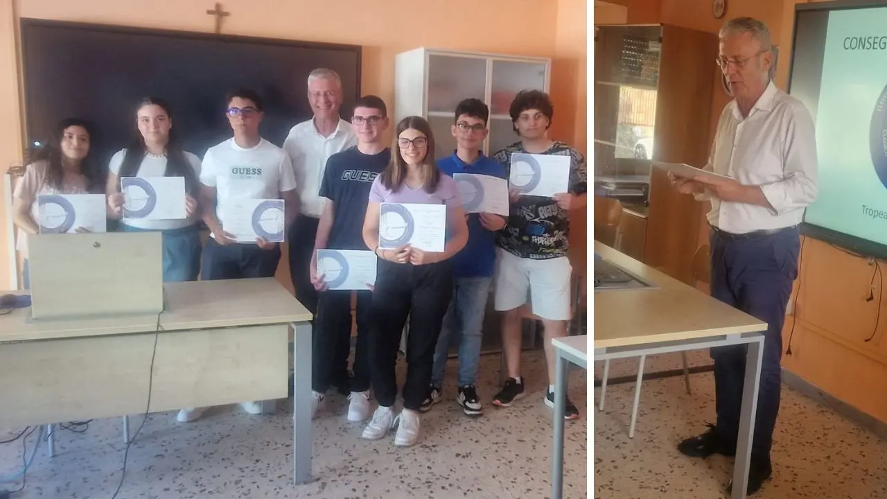 La perseveranza, la tenacia e un profondo senso di responsabilità sono stati celebrati alla scuola superiore “P. Galluppi” di Tropea, dove sette studenti eccezionali hanno ricevuto un attestato di merito per la loro assiduità impeccabile, con zero assenze registrate durante l’anno scolastico. I giovani studenti sono: Stefano Fiumara (II A liceo Classico), Martina Mazzitelli (III B quadriennale liceo Classico), Rebecca Crisafio (IV A liceo Classico), Michele Tripodi (IV A liceo Classico), Nicola Sorrentino (II A liceo Scientifico), Antonia Cortese (I C liceo Scientifico), Domenico Francesco Muscia (II A Servizi enogastronomici). Il dirigente scolastico Nicolantonio Cutuli ha voluto premiare personalmente questi giovani talenti con una cerimonia pomeridiana che si è svolta nei locali della sede centrale di via Coniugi Crigna.