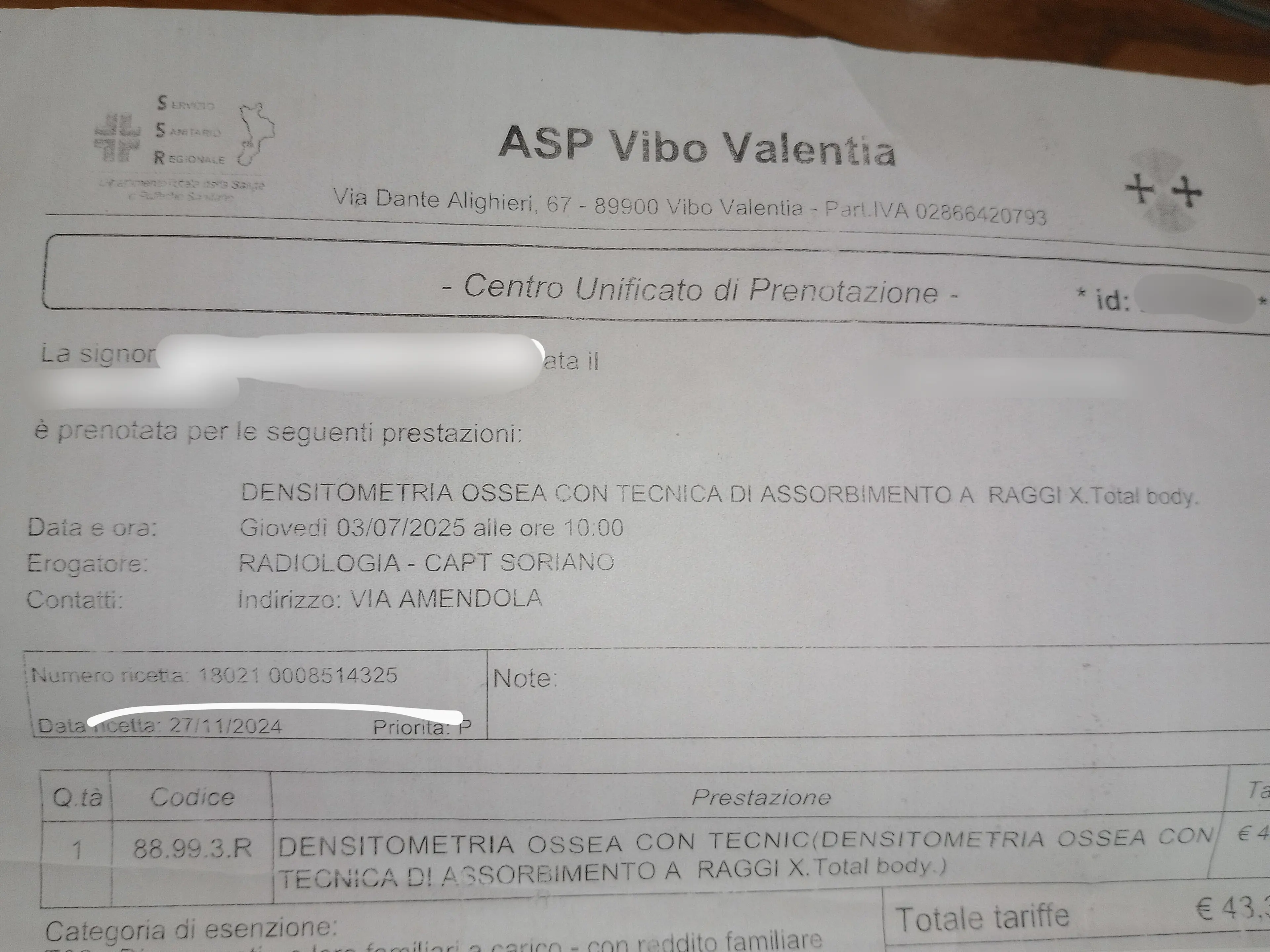 Un esame diagnostico prenotato a novembre 2024 e un ospedale impossibilitato ad espletarlo. Ennesima disavventura sul fronte sanitario per una paziente vibonese di 53 anni che, carte alla mano e dopo lunghi mesi di attesa, si era recata al nosocomio Soriano per sottoporsi a una Moc (esame radiologico utile per esempio per diagnosi come la osteoporosi).