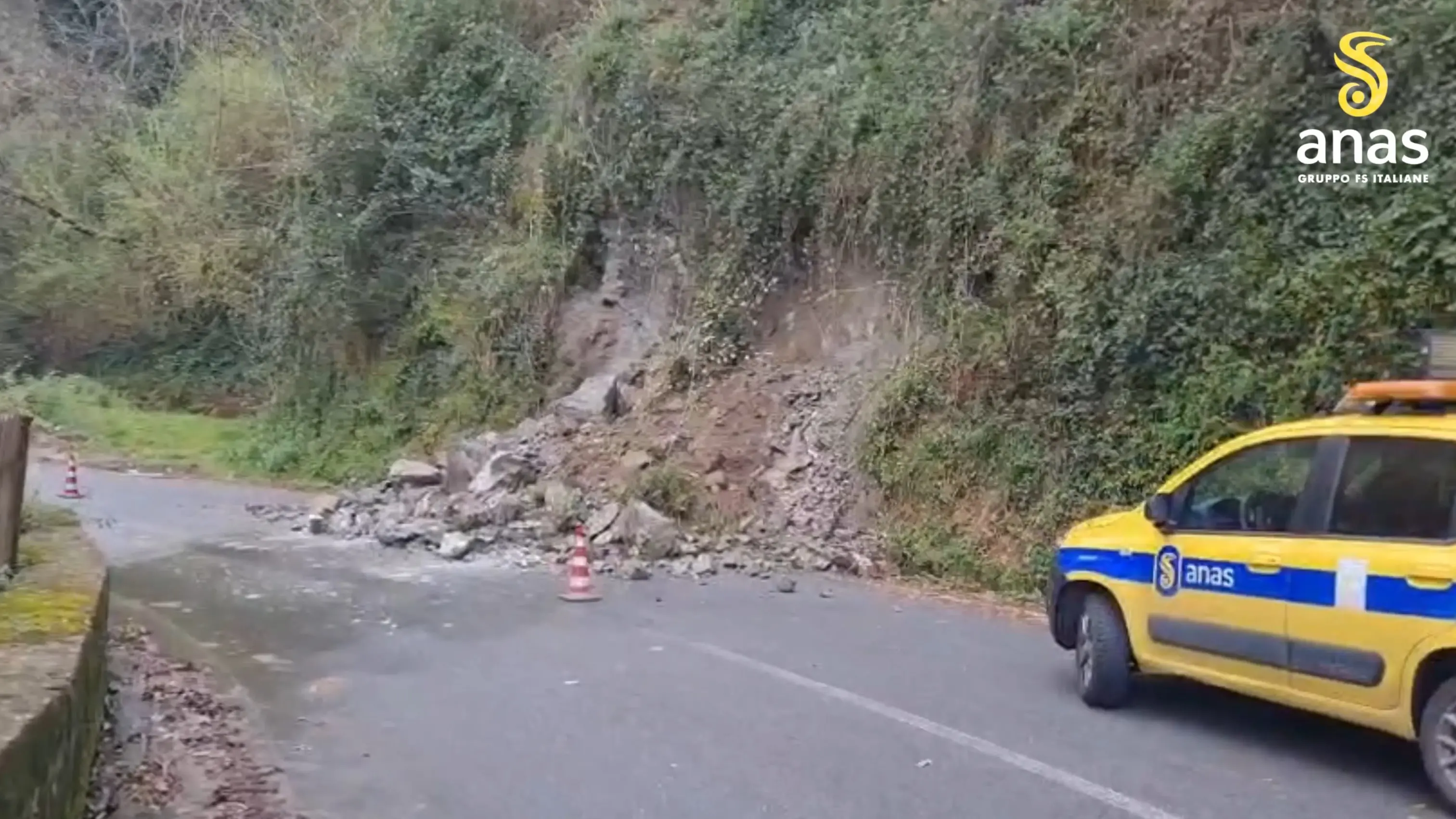 VIDEO | Lo smottamento provocato dalle forti piogge. Il personale Anas è al lavoro per liberare la carreggiata da terriccio e massi