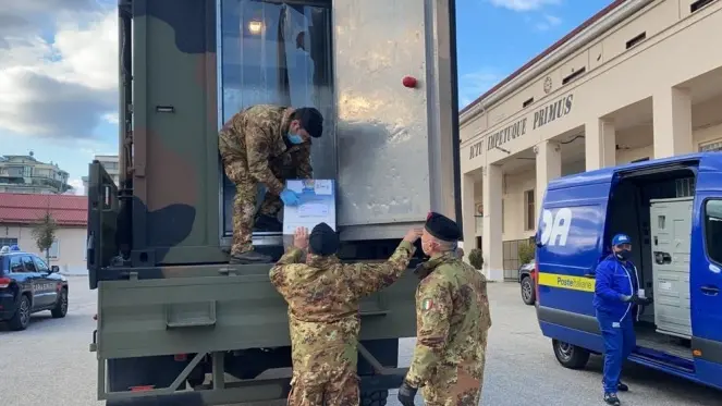 Dopo la consegna a Cosenza vengono distribuiti nei vari territori con i furgoni di Poste italiane. La fornitura avviene in collaborazione con l’Esercito