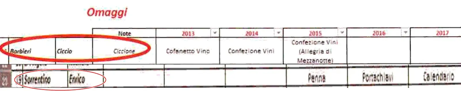 Gli investigatori, analizzando il computer sequestrato all’ex sindaco Francesco Mazzeo, si sono però imbattuti anche in altro materiale di rilievo. Più in particolare in alcuni file contenenti gli omaggi e i doni da elargire a diversi soggetti, “verosimilmente in ragione della carica di primo cittadino – annotano gli investigatori – ricoperta in quegli anni da Francesco Mazzeo”. L’ex sindaco in apposite cartelle annotava tutti i regali fatti e, tra gli omaggi (ad ulteriore conferma del legame tra i due), anche quelli all’attuale sindaco, Enrico Sorrentino, destinatario nel 2015 da parte di Mazzeo di una penna, nel 2016 di un portachiavi, nel 2017 di un calendario, nel 2022 di una confezione di vino (selezione Millesimati) e nel 2023 di spumante o similari (“Brindisi in allegria”). In regali ed omaggi l’ex sindaco non si sarebbe davvero risparmiato e nell’elenco dei nomi annotati (con relativi regali) figurano pure parlamentari e consiglieri regionali del Vibonese, due sindaci di Comuni del Vibonese poi sciolti per infiltrazioni mafiose, dipendenti del Comune di Cessaniti, sacerdoti e persino qualche esponente delle forze dell’ordine. Ma è su un nominativo in particolare (posto in cima all’elenco, peraltro) che è ricaduta l’attenzione degli investigatori dell’Arma e della Procura: quello di Francesco Barbieri, il presunto boss di Cessaniti, che lo stesso Francesco Mazzeo (per fugarne ogni dubbio sulla sua identificazione) accanto al nome e cognome indica come Ciccione. Ed è proprio “alla luce del soprannome Ciccione riportato nella colonna Note – sottolineano gli investigatori – che viene identificato Francesco Barbieri, detto Ciccione, alias Carnera, nato a Cessaniti il 21 febbraio 1965, capo della ‘ndrina di Cessaniti intraneo al locale di ‘ndrangheta di Zungri, per come attestato nell’operazione Rinascita Scott, nel cui ambito è stato condannato in primo grado a 24 anni, e nell’operazione Maestrale-Carthago nel cui ambito è attualmente imputato”. In particolare, stando alla cartella ritrovata sul computer di Francesco Mazzeo, il boss di Cessaniti nel 2013 sarebbe stato omaggiato con un “Cofanetto di vino”, nel 2014 con una “Confezione di vini” e nel 2015 (anno in cui Francesco Mazzeo è divenuto sindaco per la prima volta) con altra confezione di vini. E se tra i soggetti cui elargire “gli omaggi”, per gli investigatori “può apparire giustificata la presenza” di diversi politici o sindaci di comuni vicini a Cessaniti, “dall’altro lato è certamente discutibile la presenza in cima all’elenco – sottolineano gli inquirenti – di Ciccio Barbieri, identificato come il capo della ‘ndrina di Cessaniti”.