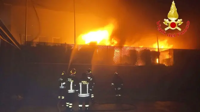 L’incendio ha inizialmente interessato una parte di deposito della carta ubicato all’esterno e poi si è propagato all’interno del capannone ed al materiale plastico depositato in adiacenza dello stesso.