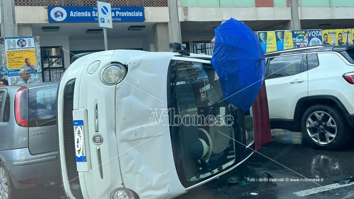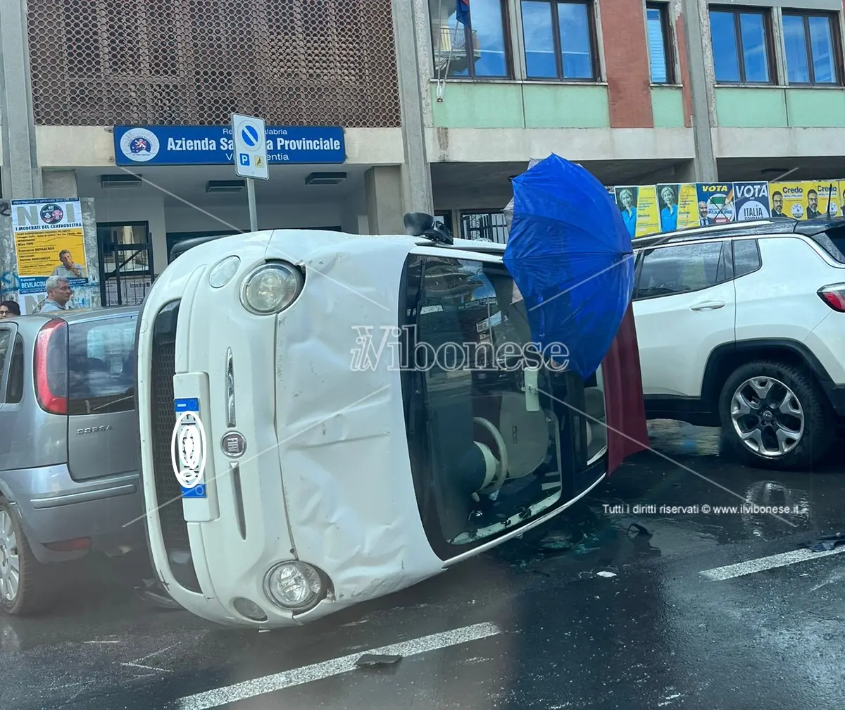 Incidente stradale a Vibo Valentia in via Dante Alighieri quasi dinanzi all’ingresso della locale Azienda sanitaria provinciale. Per causa ancora on corso di accertamento, una Fiat 500 di colore bianco si è quasi ribaltata restando in bilico sull’asfalto appoggiata in parte ad altra auto parcheggiata. Alla guida si trovava una donna che è stata subito soccorsa e, ripresasi dal forte spavento, è stata portata al Pronto soccorso dell’ospedale Jazzolino per le cure del caso. Sul posto per i rilievi e per accertare eventuali responsabilità per l’incidente si è portata la polizia.