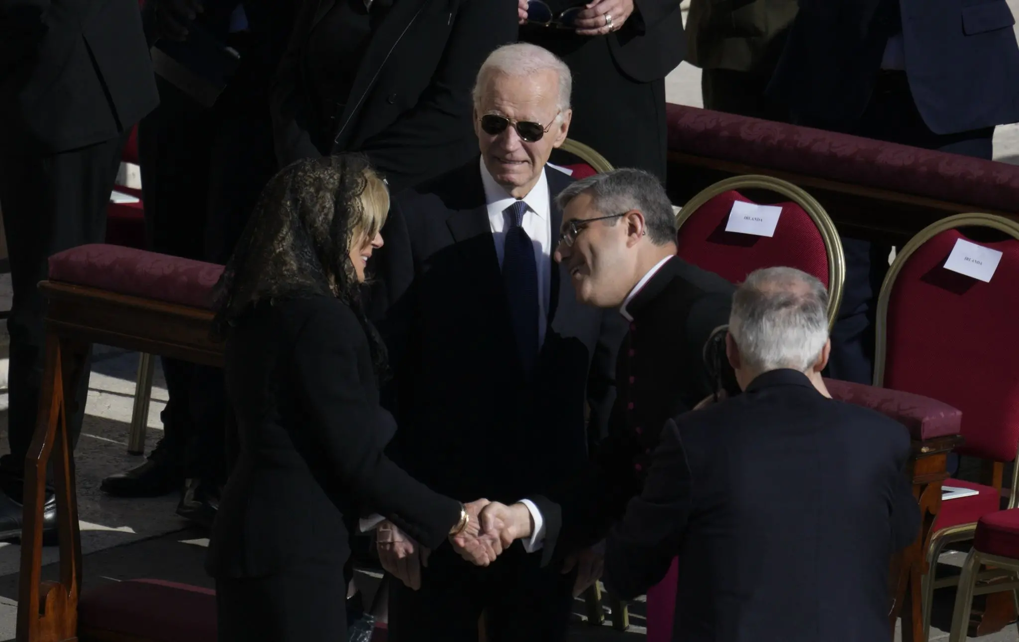 L’ex presidente degli Stati Uniti Joe Biden è arrivato in Piazza San Pietro insieme alla moglie Jill Biden. Biden siederà con il resto della delegazione degli Stati Uniti, tra cui l’attuale presidente Donald Trump e la first lady Melania Trump.