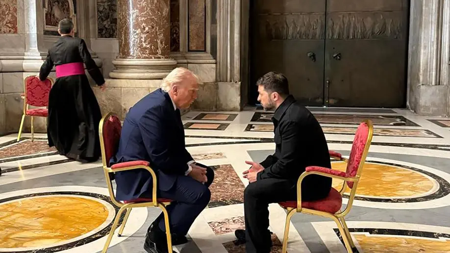 L’incontro (immortalato in un’immagine già definita storica) è durato circa una decina di minuti. Dopo avere reso omaggio al Papa, Trump, invece di uscire sul sagrato, si è appartato con il leader ucraino e poi, dopo il breve faccia a faccia, sono usciti uno dopo l’altro, accompagnati dalle mogli Melania e Olena, in piazza. Zelensky, invece della consueta uniforme militare, è vestito in nero.