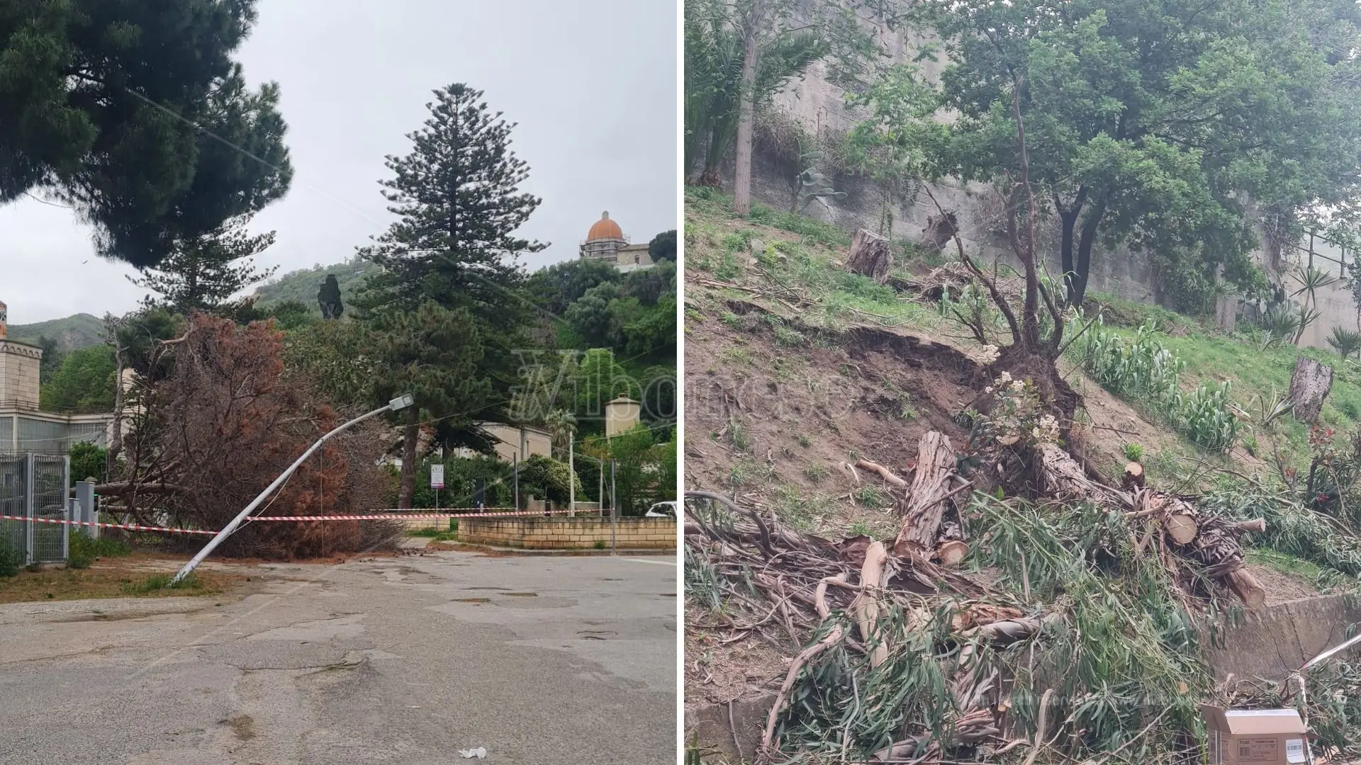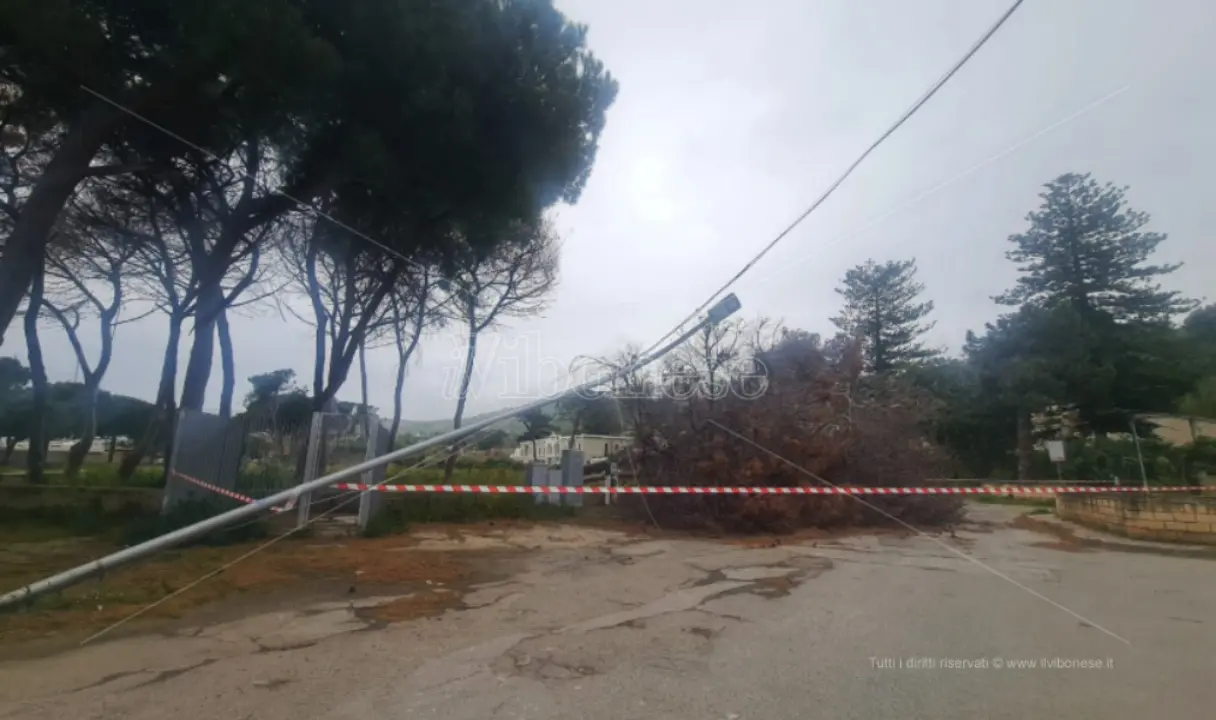 Il forte vento di queste ultime ore ha provato il crollo di due pini a Tropea, nel quartiere Marina Vescovado. Gli alberi sono precipitati sulle colonnine della ricarica elettrica. Divelto anche un lampione della pubblica illuminazione. Altro albero sradicato dalle forti raffiche di vento, lungo la discesa del noto locale Rocca Nettuno che porta al lungomare della Perla del Tirreno.