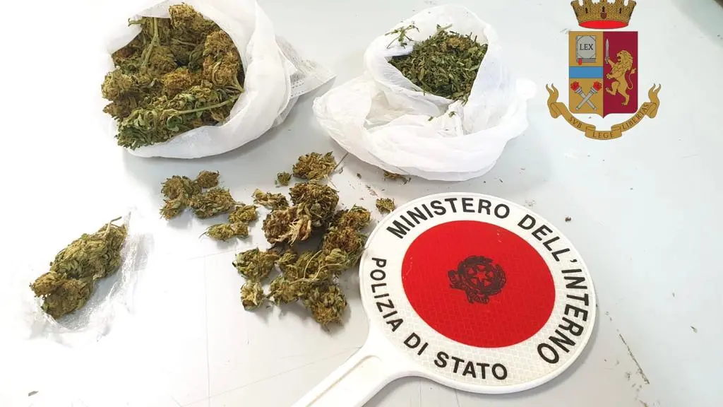 Nel corso di mirati servizi, svolti dalla Polizia di Stato, dedicati al contrasto al traffico delle sostanze stupefacenti, diversi controlli sono stati concentrati in aree rurali e più degradate della provincia, ove fenomeni di spaccio, anche al minuto, sono maggiormente diffusi, anche sulla pubblica via. Gli uomini della Squadra Mobile, transitando in un centro del territorio Vibonese, hanno sottoposto ad un approfondito controllo un soggetto sospetto, colto in prossimità della sua abitazione. Considerato l’atteggiamento dell’uomo è stata effettuata una perquisizione all’interno della sua abitazione dove gli agenti hanno subito notato un movimento repentino da parte della moglie la quale era intenta a lanciare dalla finestra una vistosa busta di carta, che tuttavia è stata immediatamente recuperata dagli uomini della Polizia, che già avevano cinturato l’area. All’interno della busta è stato trovato un vero e proprio kit per lo spaccio, e sono stati rinvenuti oltre 80 grammi di marijuana già suddivisi in diverse dosi, distinte per diverso peso, oltre a un bilancino di precisione e materiale per il confezionamento. All’esito delle indagini, pertanto, sia l’uomo che la donna sono stati denunciati alla locale Procura della Repubblica poiché sospettati di concorso nella detenzione ai fini di spaccio di sostanza stupefacente.