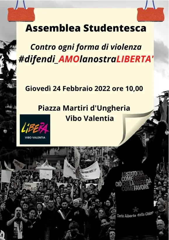 La marcia si svolgerà alla vigilia di un’altra iniziativa studentesca organizzata dal coordinamento provinciale di Libera Vibo indetta per giovedì 24 febbraio alle ore 10,00, in piazza Martiri d’Ungheria a Vibo Valentia. L’evento dal titolo “Contro ogni forma di violenza #difendi_AMOlanostraLIBERTA” coinvolgerà gli studenti del vibonese.
