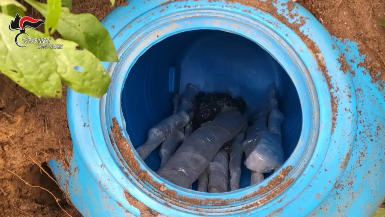 L’individuazione delle armi e della droga si è rivelata particolarmente complessa: i bidoni erano nascosti in una zona impervia, tra fitta vegetazione e canneti, scelta accuratamente per scoraggiare eventuali ricerche.