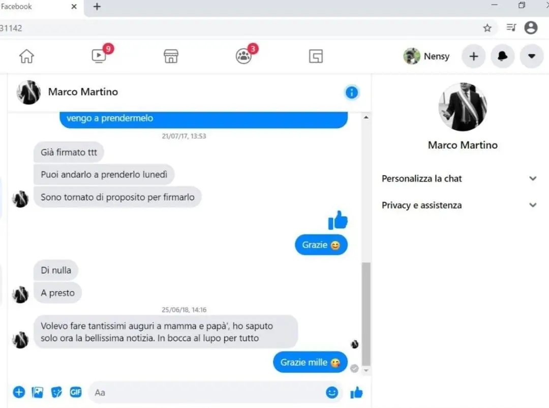 Il 18 aprile 2021, Nensy Chimirri dal proprio profilo Facebook ha pubblicato un post rendendo pubblica una conversazione intrattenuta via messaggi con il sindaco Marco Martino il 20 luglio 2017 e poi un messaggio di auguri del 25 giugno 2018. Il post si intitola: “Conversazione integrale tra il sindaco Marco Martino con Nensy Chimirri. I favori al Comune tramite Facebook e gli auguri per la figlia del boss dei Mancuso”. Nella stessa, il sindaco Marco Martino – oltre a procurare in Comune un certificato richiesto dalla Chimirri – in data 25 giugno 2018 fa gli auguri alla stessa Nensy Chimirri ed al compagno Emanuele Mancuso per la nascita della loro bambina. “Volevo fare tantissimi auguri a mamma e papà, ho saputo solo ora la bellissima notizia. In bocca al lupo per tutto”.