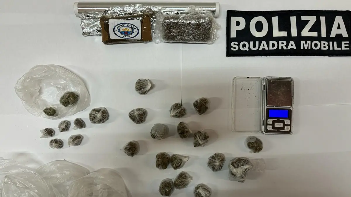 La Polizia di Stato nel corso di mirati servizi dedicati al contrasto al traffico di sostanze stupefacenti ha arrestato un uomo per detenzione di sostanza stupefacente ai fini di spaccio. Insospettiti dall’atteggiamento dello stesso, i poliziotti lo hanno perquisito rinvenendo nel marsupio diverse dosi di hashish e marijuana, già confezionate e pronte per la vendita. Gli agenti, con l’ausilio di personale dell’Unità Cinofila, hanno esteso la perquisizione presso le due abitazioni che l’uomo aveva in uso, rinvenendo all’interno di una di esse, occultati in un armadio, vari involucri di hashish e due panetti, su uno dei quali era riportata l’etichetta “Manchester City”, per un peso complessivo di circa 230 grammi. Rinvenuti inoltre 30 grammi di marijuana, nonché un bilancino di precisione e vario materiale per il confezionamento delle singole dosi. L’uomo è stato tratto in arresto in flagranza di reato e posto a disposizione dell’autorità giudiziaria. Dopo la convalida dell’arresto è stato sottoposto alla misura cautelare dell’obbligo di dimora nel comune di residenza, con obbligo di permanenza domiciliare in orario notturno.