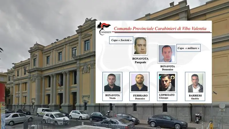 Gli indagati. In particolare il processo è stato chiesto per: i fratelli Pasquale Bonavota, 43 anni, Domenico Bonavota, 38 anni, Nicola Bonavota, 41 anni, tutti di Sant’Onofrio; Francesco Fortuna, 37 anni, di Sant’Onofrio; Onofrio Barbieri, 37 anni, di Sant’Onofrio; Giuseppe Lopreiato, 23 anni, Domenico Febbraro, anche loro di Sant’Onofrio; Vincenzino Fruci, 41 anni, di Acconia di Curinga; Andrea Mantella, 45 anni, di Vibo Valentia, collaboratore di giustizia; Francesco Michienzi, 37 anni, di Acconia di Curinga (collaboratore di giustizia).