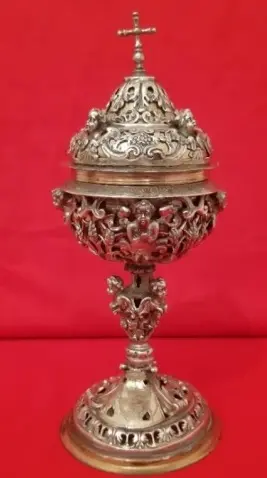La pisside è una preziosa opera di argenteria napoletana del XIX secolo, caratterizzata da una decorazione di tipo barocco, donata nel 1824 alla Cattedrale da monsignor Vincenzo Maria Armentano, vescovo di Mileto. Il suo recupero è stato possibile grazie al costante monitoraggio, svolto dal reparto specializzato dell’Arma dei carabinieri, delle vendite di beni da parte delle case d’asta nazionali ed estere. La vendita della pisside figurava nel 2018 sul catalogo di una nota casa d’aste toscana: la comparazione delle immagini con quelle contenute nella “Banca dati dei beni culturali illecitamente sottratti”, il più grande database di opere d’arte rubate al mondo gestito dal Comando Tpc, ha permesso di individuare la perfetta corrispondenza tra il bene messo all’asta e quello inserito in banca dati, a seguito del furto consumato ai danni della chiesa di Mileto.