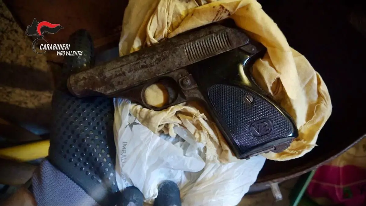 I carabinieri della Stazione di Nicotera, con il coordinamento del pm della Procura di Vibo Valentia Eugenia Belmonte, hanno arrestato Domenico Calogero, 57 anni, del luogo, per detenzione illegale di arma da fuoco. Nel corso di una perquisizione eseguita in un casolare rurale ubicato nella frazione Badia è stata trovata una pistola calibro 7,65 illegalmente detenuta. In particolare, in un deposito per attrezzi agricoli, nascosta in un barile di acciaio adattato a contenitore per mangime, l’arma è stata trovata avvolta in un panno, perfettamente lubrificata e pronta all’uso. Ulteriori accertamenti sono in corso da parte dei carabinieri per capire la provenienza dell’arma.
