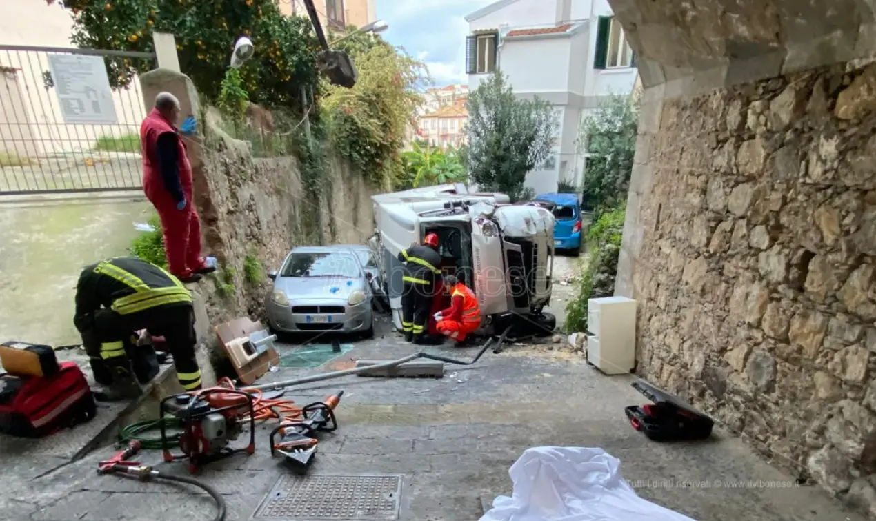 Tragico incidente a Pizzo. Un camper ha violentemente urtato una ringhiera lungo via Marcello Salomone ed è precipitato nella discesa Seggiola, tra le viuzze del centro costiero. Un uomo, il conducente del mezzo, Istvan Feher, 70 anni, è morto sul colpo. Ferita la moglie che è stata trasportata all’ospedale di Vibo. La coppia proveniva da Budapest. Immediati i soccorsi. Sul posto vigili del fuoco, forze dell’ordine e sanitari del 118. Ma per la vittima non c’è stato nulla da fare. Si attende ora l’arrivo del magistrato di turno. L’intervento dei vigili del fuoco è servito alla messa in sicurezza del sito. Si è infine proceduto al recupero del camper con supporto di autogrù.