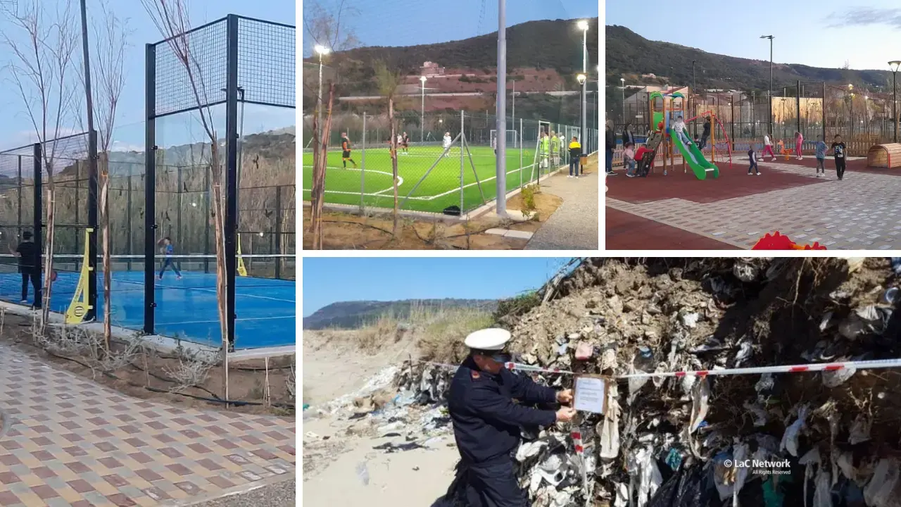 All’interno dell’area attrezzata ci sono due campi da padel, un campo da calcio a cinque, due campi da beach volley, un parco giochi e aree verdi con panchine, oltre a una struttura destinata a bar e parcheggi. Da allora, però, tutto è rimasto fermo. La vegetazione ha iniziato a riprendersi gli spazi e due pali dell’illuminazione risultano inclinati, aumentando la percezione di abbandono.