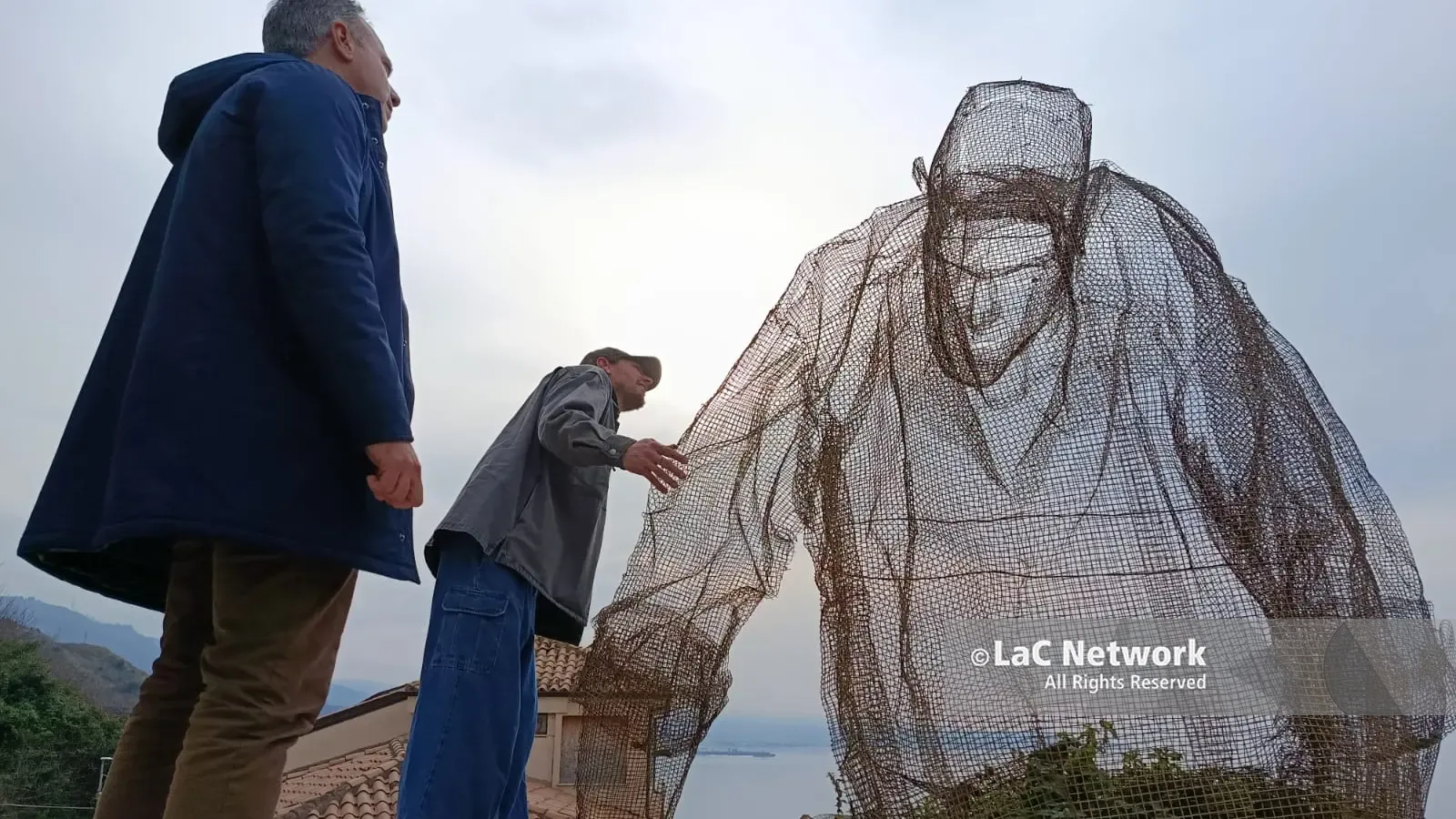 L’artista di fama internazionale rientra nella cittadina tirrenica per verificare le condizioni della scultura in rete metallica. Accolto dall’associazione Radici e dall’amministrazione comunale, valuterà un intervento di manutenzione dopo i danni causati dai cicloni di febbraio