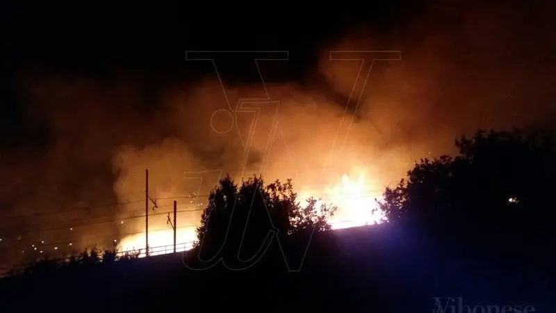 Un rogo di vaste dimensioni si è sviluppato lungo un costone sottostante via Nazionale, a Pizzo, poco fuori il centro abitato della cittadina costiera vibonese. Le fiamme, che si sono originate da più punti, hanno rapidamente avvolto la folta vegetazione al di sopra della linea ferroviaria arrivando a lambire diverse abitazioni.