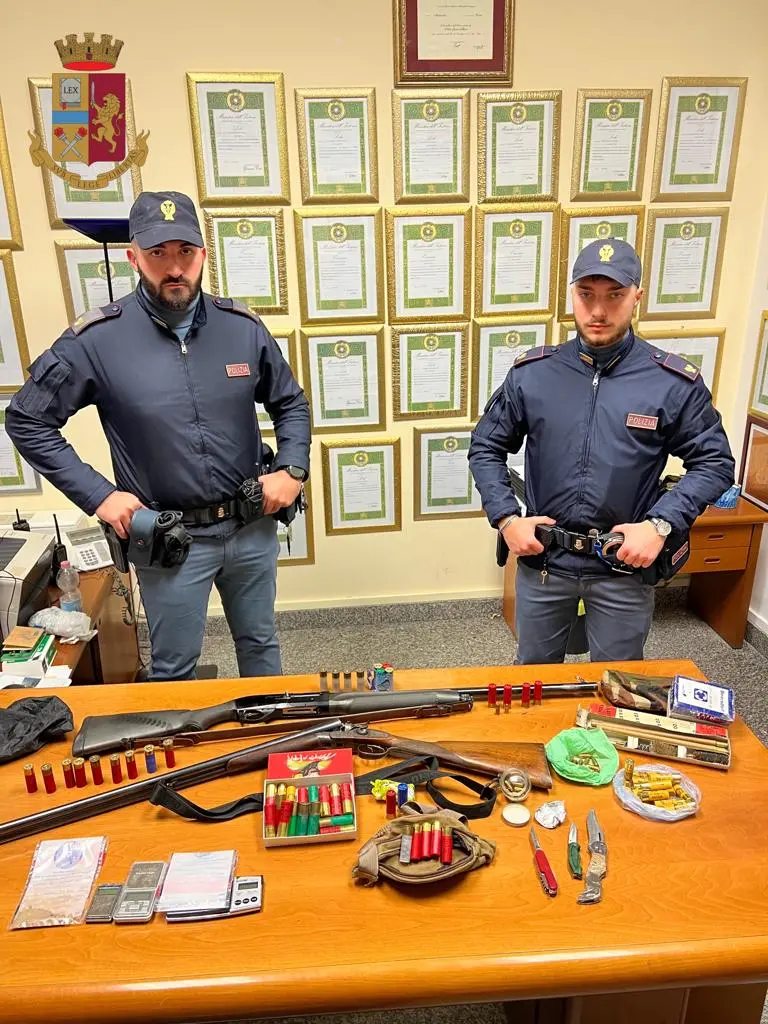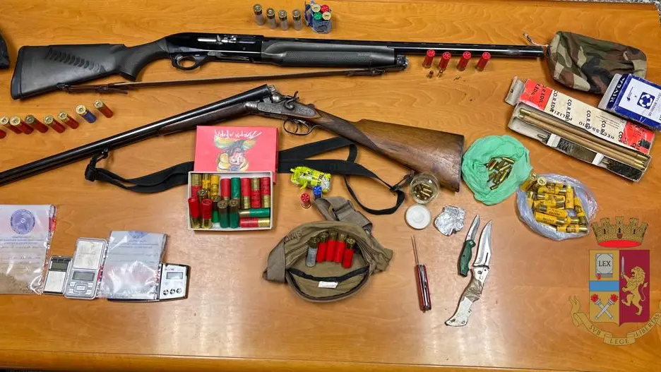 Nell’ambito di controlli ad ampio raggio nell’area di Rombiolo e di Vibo Valentia, i poliziotti della Squadra mobile hanno tratto in arresto Maurizio Castagna, 47 anni, di Rombiolo, per detenzione di armi e droga. I fatti: gli agenti hanno proceduto al fermo di un’autovettura sospetta, notata transitare nel centro urbano di Vibo Valentia e sin dal primo controllo è emerso chiaramente lo stato di agitazione del 47enne. I poliziotti, pertanto, hanno proceduto ad approfondire le ricerche rinvenendo così della sostanza stupefacente abilmente occultata. Una dose di cocaina era nascosta in un risvolto del berretto, avvolta in un involucro trasparente e, all’interno della leva del cambio erano nascosti dieci grammi di eroina. Considerato il rinvenimento delle droghe pesanti nell’auto, i poliziotti hanno esteso la perquisizione agli immobili riferibili a Maurizio Castagna, rinvenendo all’interno dell’abitazione due fucili illegalmente detenuti, uno calibro 12 con matricola abrasa e uno di illecita provenienza calibro 16, oltre a 59 munizioni da fucile e 19 cartucce per pistola. [Continua in basso]