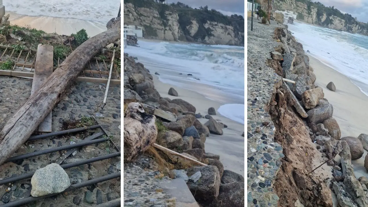 Il maltempo di questi giorni ha imperversato lungo la costa e causato alcuni danni a Tropea, dove il forte moto ondoso ha nuovamente aggredito il tratto pedonale del lungomare “Antonio Sorrentino” (già oggetto di crolli da diversi anni per l’erosione costiera in avanzamento), causando smottamenti a ridosso delle spiaggie e piccoli crolli generali nell’area di Marina del Convento in prossimità di alcuni lidi. La bretella pedonale stamane è apparsa distrutta in più punti, con il basamento del parapetto ceduto, le inferriate divelte e le scalette in legno di accesso alla spiaggia crollate a mare. In alcune zone poi anche la vegetazione a ridosso delle scogliere ha ceduto. A dare manforte alla mareggiata, ieri e stanotte anche forti raffiche di vento che, secondo i dati forniti dalla Stazione meteo installata sulla casa comunale (che oltre ad analizzare i fenomeni atmosferici punta un occhio anche sul santuario di Santa Maria dell’Isola) da una velocità iniziale di circa 60 chilometri orari hanno poi toccato punte oltre i 100 chilometri orari.