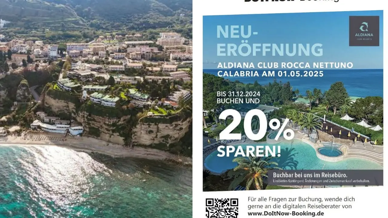Lo storico complesso turistico di Rocca Nettuno a Tropea riapre i battenti dal 1° maggio 2025, sotto la gestione dell’Aldiana Club (come circa 10 anni fa). Le voci che si sono rincorse in questi ultimi giorni erano dunque fondate, dal momento che sul sito ufficiale sono già aperte le prenotazioni nella struttura a ridosso del mare. Ad accogliere positivamente la notizia, dopo il fallimento del tour operator tedesco Fti che gestiva il grosso delle prenotazioni su Tropea, avvenuto a inizio estate quest’anno, è l’associazione Albergatori cittadina (Asalt). «Apprendiamo – hanno scritto gli albergatori tropeani del sodalizio in un post sui social – che lo storico complesso turistico Rocca Nettuno di Tropea riaprirà le sue porte il 1° maggio, sotto una nuova e prestigiosa gestione dell’Aldiana Club Rocca Nettuno Calabria, marchio premium del gruppo Dertour, leader nel segmento dei club in Europa».