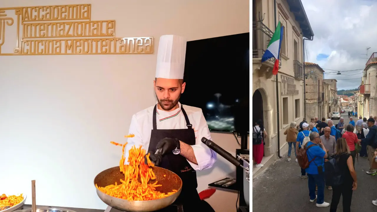 Una delegazione ha partecipato a un laboratorio di cucina tradizionale calabrese negli spazi dell’Accademia internazionale di cucina, nel centro storico. Focus su pasta fresca, prodotti tipici, olio e vino locale con degustazioni guidate