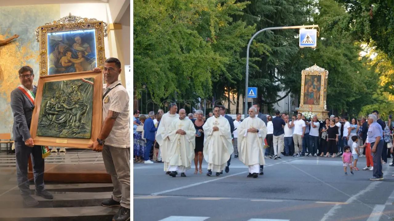 Il fulcro dei festeggiamenti è stato il pomeriggio di sabato, con la solenne messa e la successiva processione con il quadro, che ha toccato i cuori di tutti i presenti. «L’accoglienza è stata calorosa e incondizionata». Come sottolineato ancora da don Larosa, «il parroco di Nova, don Luigi Caimi, il sindaco e la comunità tutta ci hanno accolto con grande gioia ed entusiasmo. La parrocchia di Nova, inoltre, ha messo a disposizione l’intera struttura dell’Oratorio, che sabato sera ha ospitato una grande festa con oltre mille persone». Un momento di grande significato è stata poi la donazione di una preziosa icona della Madonna della Neve, realizzata dal maestro Michele Zappino, che è stata consegnata alla comunità di Nova Milanese ed ora è custodita nella chiesa di San Bernardo. «Questa reliquia preziosa che abbiamo donato ai nostri emigrati – ha concluso don Larosa – sigilla un legame indissolubile tra le due città».