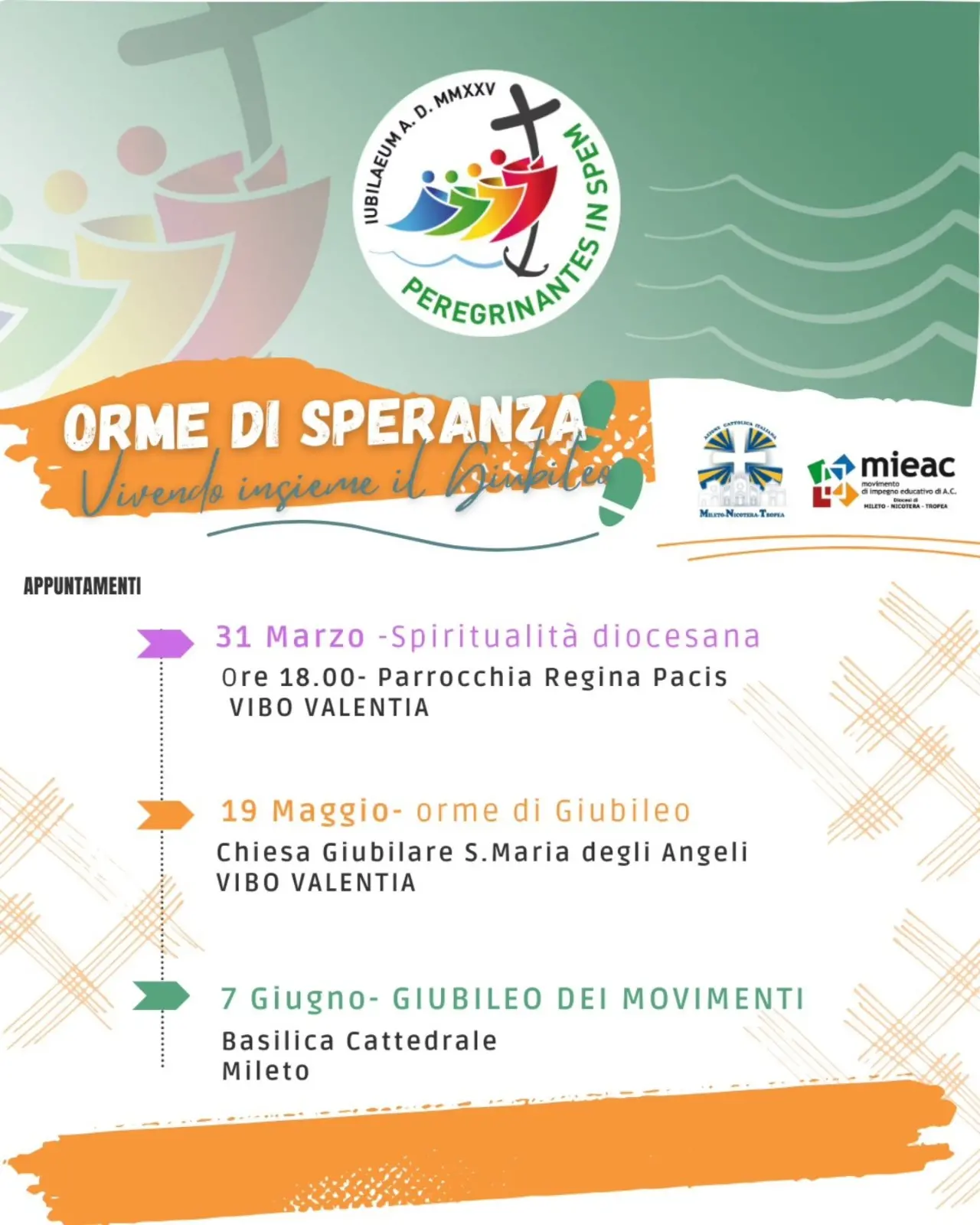 Un vento di rinnovamento e preparazione spirituale sta pervadendo la diocesi di Mileto-Nicotera-Tropea con l’annuncio del percorso “Orme di SPeranza – Vivendo insieme il Giubileo”. L’iniziativa, frutto della sinergia e dello spirito sinodale tra l’Azione cattolica diocesana e il Movimento di impegno educativo dell’Azione cattolica (MieAc) diocesano, si pone l’obiettivo di accompagnare la comunità in un cammino di preparazione al significativo appuntamento del Giubileo dei Movimenti e delle associazioni laicali. Il progetto “Orme di Speranza” si articola in una serie di tappe pensate per coinvolgere la comunità sia sul piano liturgico-spirituale che su quello educativo-formativo. Questa duplice attenzione testimonia la volontà di vivere pienamente l’anno santo attraverso momenti di profonda spiritualità e liturgia, affiancati da occasioni di crescita e formazione.