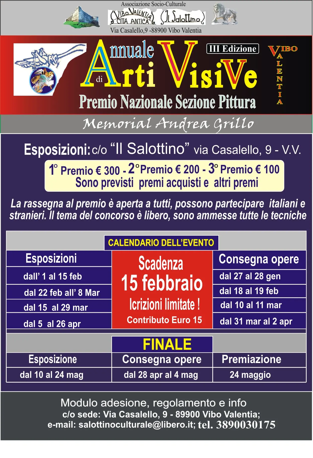 L’associazione “Vibo città antica – Il Salottino”, attraverso un comunicato stampa, ha annunciato l’apertura della terza edizione del Premio nazionale di pittura dell’Annuale arti visive in memoria di Andrea Grillo, un evento che celebra la creatività e il talento di artisti italiani e stranieri. La competizione, ha fatto sapere l’associazione, «è aperta a tutti e non prevede un tema specifico», lasciando così ampia libertà agli artisti di esplorare e presentare le proprie visioni attraverso «qualsiasi tecnica pittorica». L’evento «si svolgerà in quattro mesi, da febbraio a maggio, con premiazione finale prevista il 24 maggio».