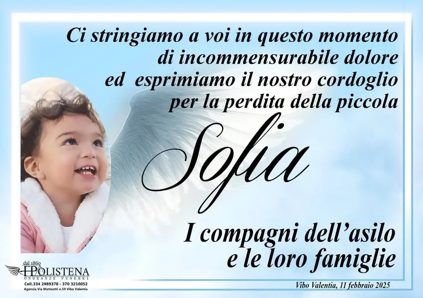 La morte di una bambina di appena due anni ha gettato nella disperazione un’intera famiglia e commosso tantissimi cittadini della frazione costiera che ieri pomeriggio hanno voluto esprimere la loro vicinanza ai parenti della piccola Sofia, deceduta improvvisamente nel sonno martedì scorso. Un’immensa folla ha infatti voluto dare l’ultimo saluto a alla piccola Sofia nella chiesa parrocchiale di Maria Santissima del Rosario di Pompei a Vibo Marina.