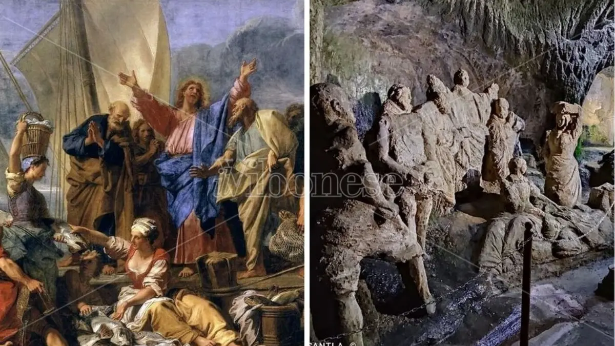 Un naufragio avvenuto intorno alla metà del ‘600 coinvolse un veliero con equipaggio napoletano. I marinai scavarono nel tufo una piccola cappella e vi collocarono la sacra immagine della Madonna. All’interno della chiesetta di Piedigrotta a Pizzo, una delle opere più ammirate, per la sua complessità, è il gruppo statuario della “Pesca miracolosa”, che riproduce il celebre passo del Vangelo. Ma da quale quadro i fratelli Barone hanno tratto ispirazione per realizzarlo? La posizione del Cristo con sguardo e mani alzate al cielo, intorno a cui ruota tutta la scena dei pescatori e delle donne, contornato dagli apostoli in preghiera, è speculare ad un celebre dipinto, “La peche miraculeuse”, custodito nientemeno che al museo del Louvre a Parigi, eseguito intorno alla prima decade del Settecento dal pittore francese Jean Baptiste Journet il Grande. Si tratta di un’opera nota solo ai cultori dell’arte. Come e quando i Barone hanno potuto conoscere questa opera, dalla quale è partita l’ispirazione per realizzare il gruppo statuario napitino e che dimostra la profonda cultura artistica dell’autore Angelo Barone e dei suoi successori? Ma questa è un’altra storia, certamente degna dei dovuti approfondimenti.