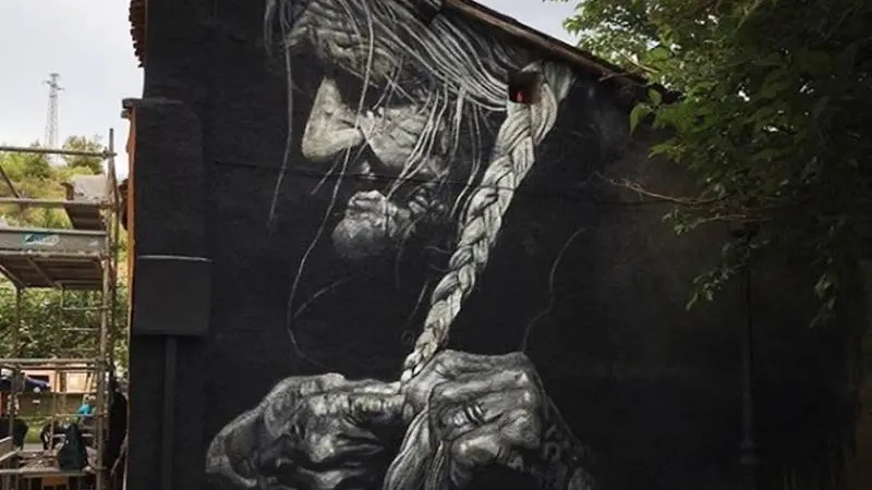 A quell’immagine sono state associate citazioni famose e frasi ad effetto che hanno raccolto centinaia di migliaia di like. Se il web, si direbbe nel linguaggio social, ne ha fatto un “meme”, il mondo dell’arte quel volto l’ha elevato ad icona. La nonnina intenta a intrecciare i suoi lungi capelli (che non taglia da decenni), o con la chioma argentata pettinata da un acconciatore professionista, è stata riproposta in mille modi: in versione originale su pannelli fotografici finiti dentro studi professionali, locali pubblici e private abitazioni di tutto il mondo; dipinto su tele; stampato su t-shirt e pannelli in legno; elaborato attraverso collage e computer grafica. Su un muro di Huarte, nel nord della Spagna, è diventato addirittura un murales (foto in alto). Potere della rete. Potenza delle immagini. Fascino di un volto segnato da mille rughe che racchiude l’essenza della saggezza, della forza e della tenerezza di un’umile donna del Sud che ha fatto della sua vita un esempio, quasi un romanzo. Un manifesto politico direbbe chi ha studiato. Il tutto sintetizzato in immagini che l’occhio di un grande artista hanno reso immortali. Come ogni icona che si rispetti.