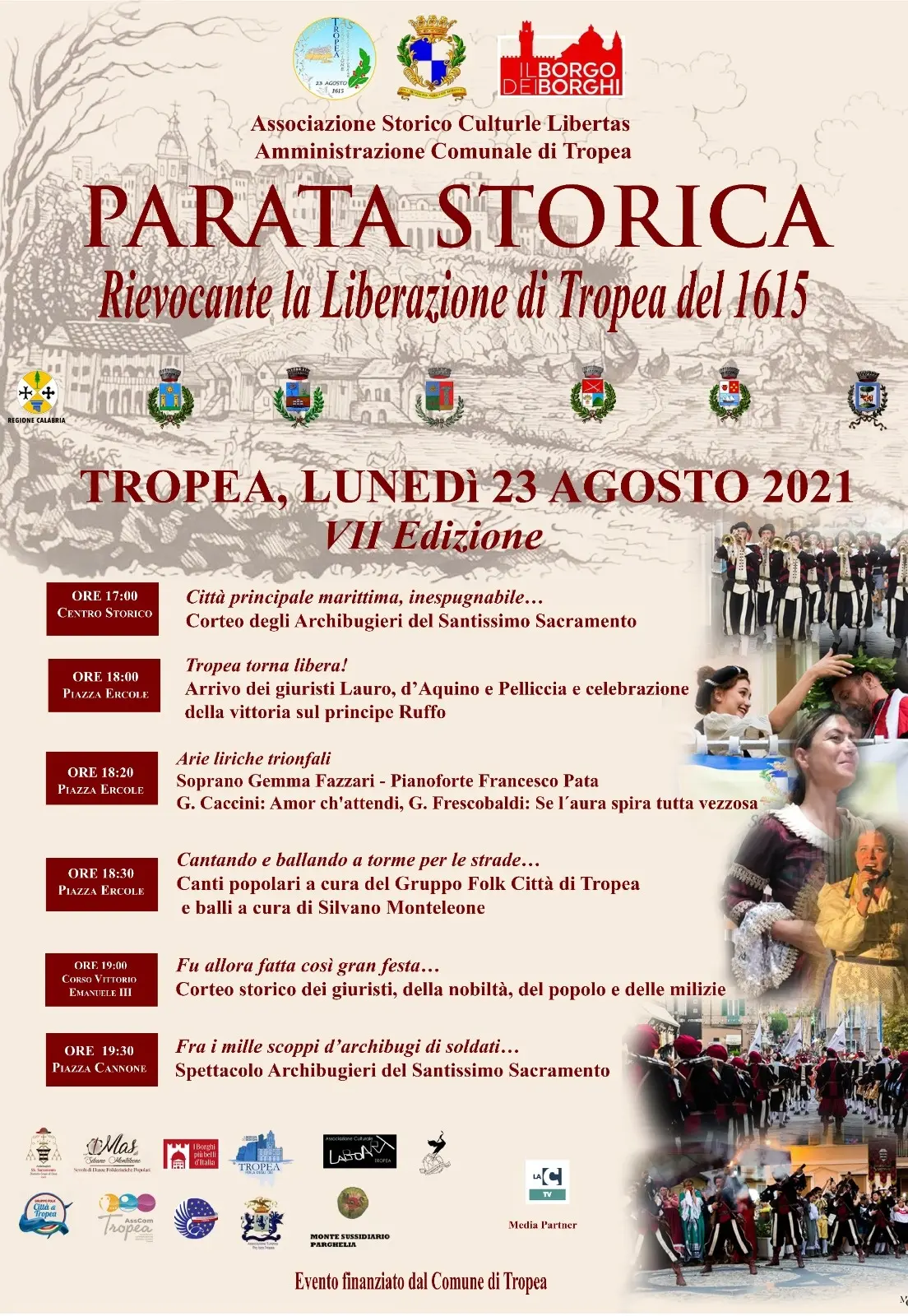 La Parata storica, organizzata dall’associazione storico culturaleLibertas e dal Comune di Tropea, è giunta alla VII edizione nell’anno in cui la città tirrenica si giova del titolo di Borgo dei Borghi e della Bandiera Blu. Tropea, come una nobildonna cosciente del suo lustro e prestigio si prepara ad accogliere i visitatori con tutto il solenne sfarzo della sua antica e nobile bellezza.