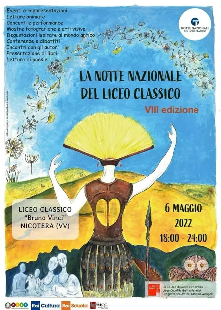 Anche la provincia di Vibo aderirà al progetto: il liceo classico “Bruno Vinci” di Nicotera (guidato dalla dirigente Marisa Piro) ha infatti annunciato che l’istituto aprirà le porte a chiunque voglia conoscere meglio il mondo “classico”. Sono previsti, infatti, eventi e rappresentazioni, letture animate, concerti e performance, mostre fotografiche e arti visive, degustazioni ispirate al mondo antico, conferenze e dibattiti, incontri con gli autori, presentazioni di libri e letture di poesie. Un’idea, questa, utile soprattutto a indirizzare le nuove generazioni che devono iscriversi alle scuole superiori e non hanno ancora ben chiaro quale possa essere l‘istituto più “vicino” alle proprie passioni.