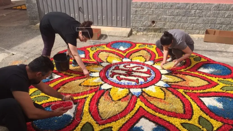 Un vero e proprio tappeto floreale, caratterizzato da rappresentazioni sacre, immagini religiose e scene tratte dalla Bibbia, realizzate con i fiori campo raccolti nei giorni precedenti alla ricorrenza.