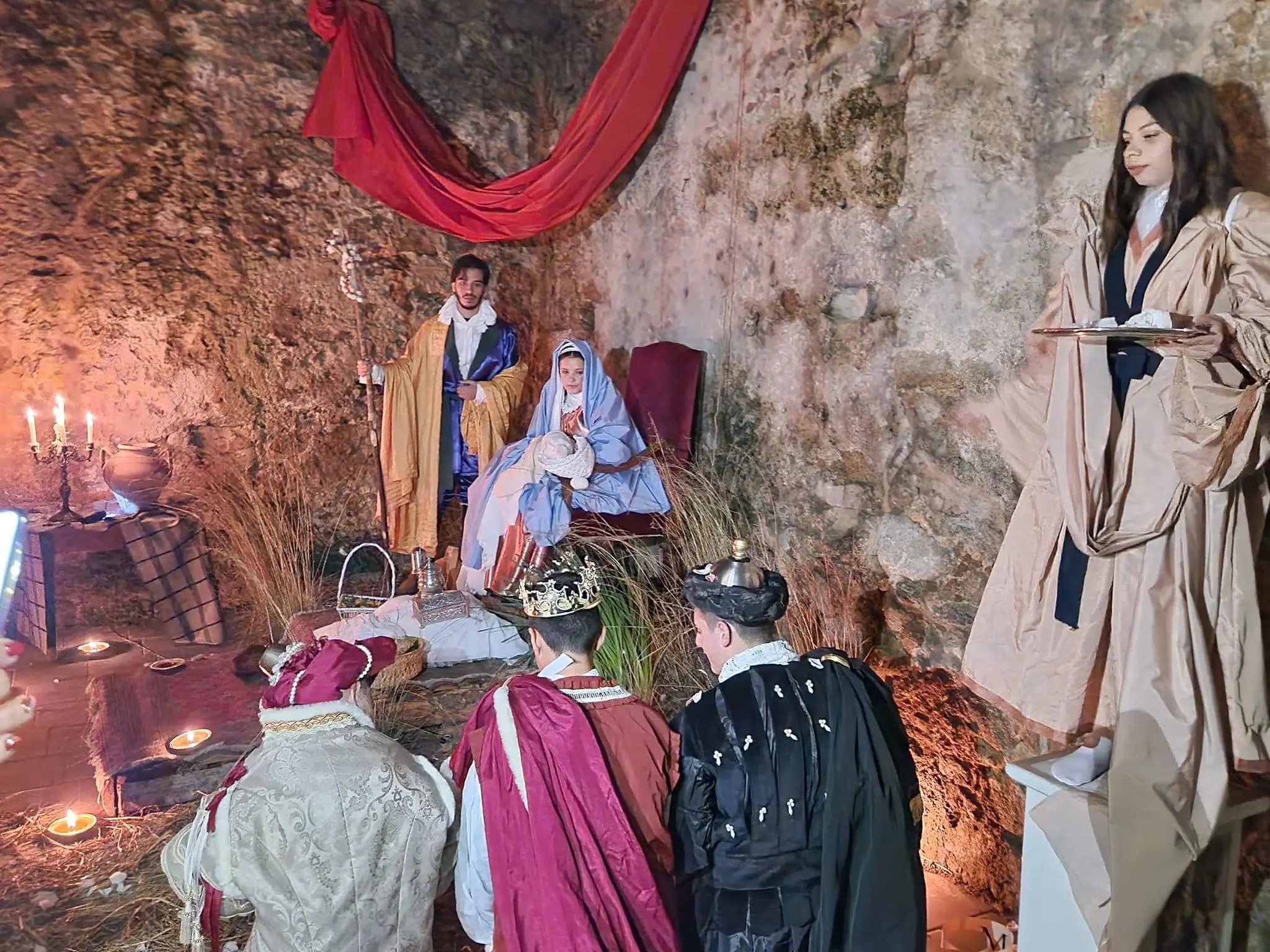 Il progetto – promosso dal Polo Museale e dalla la Pro Loco cittadina, in collaborazione con i “Giovani di San Domenico” e il Comune – che ha visto il coinvolgimento di 50 figuranti, è stato ideato e diretto da Mario Panarello, presidente onorario del Polo Museale, sostenuto dalla direttrice Mariangela Preta e dalla presidente della Pro Loco Maria Teresa Daffinà. “Per i visitatori è stato come immergersi in una sorta di Tableau vivant di un settecentesco presepe vivente di gusto napoletano – ha dichiarato Mariangela Preta – in accordo con il gusto le luci e i colori dei momenti suggestivi del Natale: dalla tradizionale Natività di Cristo all’annuncio degli angeli, dall’adorazione dei pastori all’arrivo dei Magi, sullo sfondo dello scenario unico dell’antico complesso conventuale in rudere nelle cui originarie botteghe sono stati ricreati i mestieri tipici di un borgo antico e scene di vita quotidiana riproducendo anche i costumi tipici del Barocco napoletano grazie all’abile sarta Carmela De Marco”.