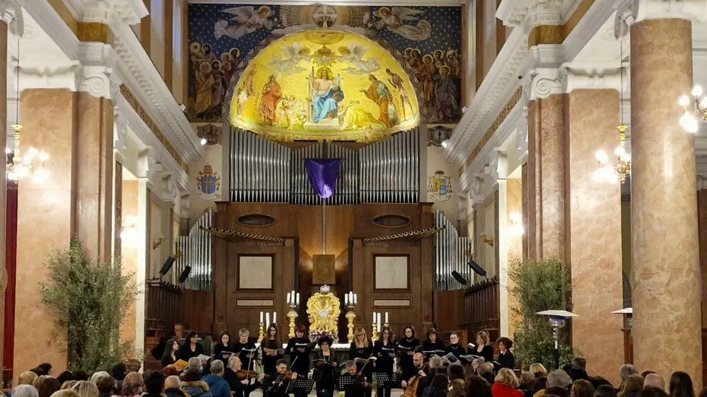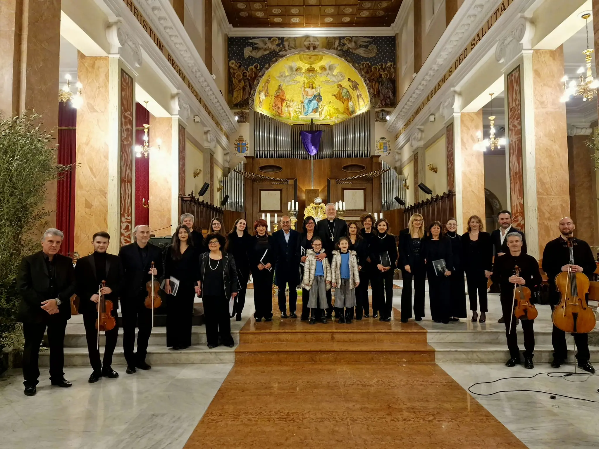 Grandi emozioni per lo “Stabat Mater” del maestro Giovanni Battista Pergolesi, proposto nella basilica cattedrale di Mileto dal Cantiere musicale internazionale, in collaborazione con il Conservatorio “Francesco Cilea” di Reggio Calabria. Al concerto di musica sacra ha assistito in certosino silenzio un pubblico numeroso e attento, il quale però non ha mancato di esprimere nei momenti opportuni il proprio apprezzamento, indirizzando scroscianti applausi agli artisti che si sono esibitisi nell’occasione con l’opera settecentesca del famoso compositore di Jesi. Non è mancato il classico bis finale dell’Ave Maria richiesto ai musicisti dal pubblico. Nello specifico, a proporre con maestria lo “Staber Mater”, tra le possenti navate della chiesa madre della diocesi di Mileto-Nicotera-Tropea, sono stati: Caterina Francese (soprano), Tina Galante (mezzosoprano), i coristi dell’Ensamble “Mater Giubilaei” del Cantiere Musicale internazionale, Sergio Coniglio (basso continuo) e l’Ensamble composta da Pasquale Faucitano (primo violino), Michael Manuli (secondo violino), Giuseppe Tallarico (viola) e Umberto Aleandri (violoncello). Il tutto, in piena sintonia con i momenti di mestizia e di profondo raccoglimento tipici della Settimana Santa, nell’attesa della risurrezione finale del Cristo Redentore. Tra i presenti nella basilica cattedrale, il vescovo Attilio Nostro, il sindaco di Mileto Salvatore Fortunato Giordano, il direttore del Cantiere musicale internazionale Roberto Giordano e il vicedirettore del Conservatorio “Francesco Cilea” Vittoria Caracciolo.