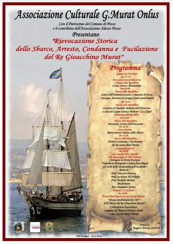 Il grande evento dell’autunno calabrese è ormai alle porte: dopo quattro anni di attesa, sabato 7 ottobre e domenica 8 ottobre 2023, torna a Pizzo la Rievocazione storica dello sbarco, arresto, condanna e fucilazione del re Gioacchino Murat. L’evento, incastonato nel programma delle rievocazioni storiche degli appuntamenti dedicati al decennio francese in Calabria, ripercorrerà uno dei momenti più importanti della storia della nostra regione: il coraggioso tentativo del Re Gioacchino Murat, sbarcato proprio a Pizzo, con il “sogno” di rimpossessarsi del suo amato regno. La rievocazione storica, si ricorda, nel 2019 ha ricevuto il riconoscimento di “evento a rilevanza nazionale” dal Ministero della Cultura e dei Beni Culturali, è patrocinata dal Comune di Pizzo, sarà realizzata con il contributo dell’associazione “Adesso Pizzo” ed è nata da una idea e da un format unico, ideato e messo in campo dall’associazione culturale G. Murat di Pizzo con il coinvolgimento di centinaia di figuranti, sia militari che civili, provenienti da tutta Italia. La manifestazione inizierà nel pomeriggio di sabato 7 ottobre con il “Corteo storico murattiano” che, attraversata la cittadina, giungerà in Piazza della Repubblica, dove avra’ luogo il “Concerto di musiche militari dell’Ottocento” a cura del Gruppo storico militare “La Clique”. Nella mattinata di domenica, invece, in Piazza della Repubblica sarà allestito il mercatino dell’Ottocento, seguirà, a Pizzo Marina, la rievocazione storica dello sbarco che proseguirà, poi, in Piazza della Repubblica e presso il Castello Murat con l’arresto, la condanna e la fucilazione del re Gioacchino Murat. Le manifestazioni proseguiranno nei giorni successivi con un convegno, lunedì 9 ottobre, presso il Liceo statale Vito Capialbi di Vibo Valentia sul tema “Napoleone Bonaparte e Gioacchino Murat, gli occhi della rivoluzione sull’Occidente” e la solenne celebrazione eucaristica, in memoria del Re Murat, che si terrà venerdì 13 Ottobre presso la Chiesa Matrice di San Giorgio Martire a Pizzo. Il ricco ciclo di appuntamenti, quest’anno, si appresta ad essere ancora più carico di emozione che nel passato poiché si svolgerà, nel ricordo del suo ideatore e principale promotore, Giuseppe Pagnotta, prematuramente ed improvvisamente scomparso lo scorso mese di maggio, presidente dell’Associazione Murat, oggi guidata con dedizione dal nuovo presidente Ruggero Antonio Ceravolo.