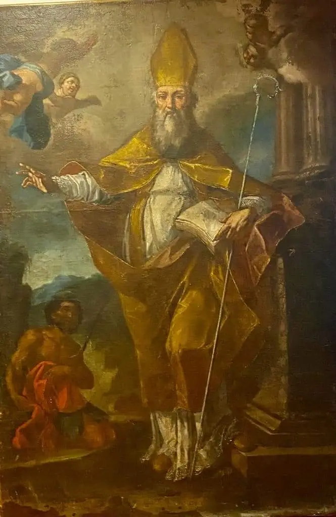 È uno dei santi più venerati in Occidente. Nato da genitori pagani, – San Martino – fu vescovo di Tours e condusse vita monastica in un cenobio da lui stesso fondato. Secondo la tradizione, nel vedere un mendicante seminudo patire il freddo durante un acquazzone gli donò metà del suo mantello; poco dopo incontrò un altro mendicante e gli regalò l’altra metà: subito il cielo si schiarì e la temperatura si fece più mite. La devozione a San Martino, ungherese di nascita (336-337 Sabaria-Pannonia, oggi Szombathely in Ungheria) allevato in Italia e vescovo-asceta in Francia, è stata portata a Soriano Calabro – dove è patrono – dai Normanni, all’epoca in cui il Conte Ruggiero dominava da Squillace a Mileto, dando inizio al cominciamento della cosiddetta colonizzazione latino-normanna, i cui protagonisti oltre al Conte normanno, furono Papa Urbano II e San Bruno di Colonia. La prima chiesa parrocchiale dedicata a San Martino di Tours venne costruita nel 1070 – in seguito distrutta dal terremoto e poi ricostruita – per volere del Conte Ruggiero, nella parte bassa del comune dell’entroterra come riporta il Campitelli che scrive: ‹‹Da particolar divoto affetto spinto il gran Conte volle al Santo Vescovo di Tours alzar la Chiesa, che ora di San Martino si appella››. L’attuale chiesa matrice dedicata a San Martino è la terza chiesa eretta in suo onore, edificata nel 1930 sulle rovine della chiesa precedente, lesionata gravemente dal terremoto del 1908. Lo stile è neoclassico con facciata ornata da paraste e cornici con fastigio a cuspide in cui è inserito lo stemma del Santo. All’ingresso principale si accede tramite una gradinata trilaterale in pietra granitica. L’interno a croce latina è caratterizzato da tre navate, una centrale e due laterali, separate da pilastri quadrangolari sormontati da capitelli. Sull’arco a tutto sesto della navata centrale due angeli reggono un cartiglio con la scritta “Jesum Christum Regem Regnum venite ad oremus”. Il soffitto piano è dipinto con finti rilievi decorativi. Dei tre altari, i due laterali, datati 1932, pressoché identici, posti nei transetti, sono in marmo bianco con tarsie policrome. Sull’altare maggiore, eredità della chiesa preesistente, con i portali laterali in marmo, grande interesse riveste il tabernacolo con i suoi bassorilievi che rappresentano la vite e i tralci. In alto, nell’ancona barocca in legno, troneggia una imponente statua lignea di San Martino. Si tratta di una scultura probabilmente del XVII secolo, di autore ignoto. La forte devozione al santo patrono del borgo dell’entroterra è percepibile anche all’interno del Polo museale dove è esposto il dipinto raffigurante San Martino vescovo di Tours, opera proveniente dalla chiesa Matrice, un’ importante tela attribuita a Francesco Saverio Mergolo, pittore originario di Vibo Valentia. La tela è di notevole qualità e si rapporta a un dipinto firmato dall’artista recentemente identificato sul mercato antiquario spagnolo. Significativi i rimandi alla cultura pittorica napoletana e romana sapientemente fusi dal pittore, la cui produzione fu particolarmente apprezzata dei contemporanei. La figura, elegantemente panneggiata, si mostra in una posa statuaria nelle vesti canoniche vescovili, captando lo sguardo dell’osservatore. In basso a sinistra è raffigurato il mendicante a cui il santo donerà parte del suo mantello.