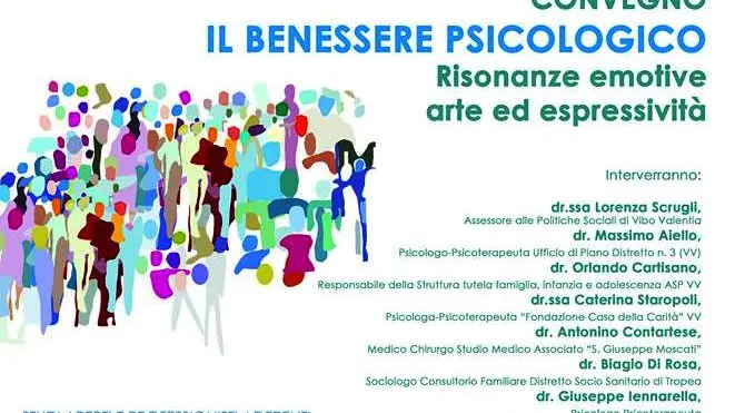 Nel pomeriggio del 10 ottobre, alle 17, al complesso Santa Chiara di Vibo, con il patrocinio del Comune di Vibo Valentia, la collaborazione dello Studio Medico Associato San Giuseppe Moscati e della Fondazione Casa della Carità, si terrà il convegno aperto al pubblico dal titolo “Il benessere psicologico. Risonanze emotive, arte ed espressività”.